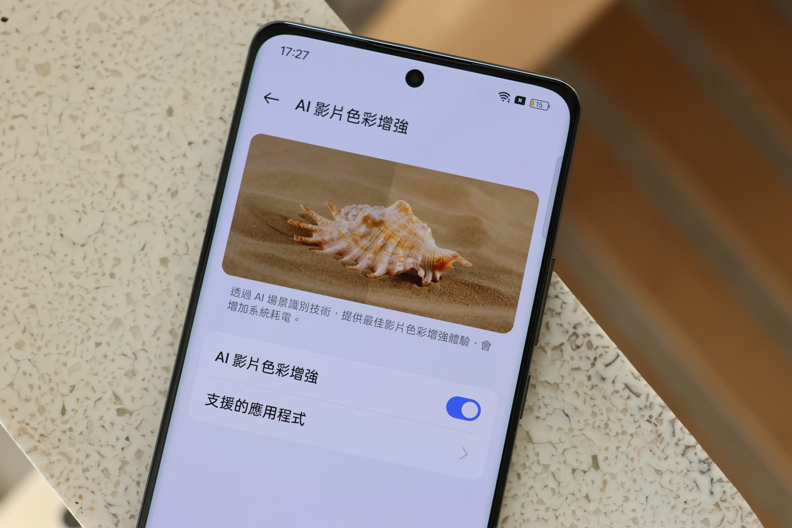內建 AI 影片色彩增強功能,在看影片時就可以透過 AI 進行場景辨識,提高色彩表現或是調整畫面明暗對比。