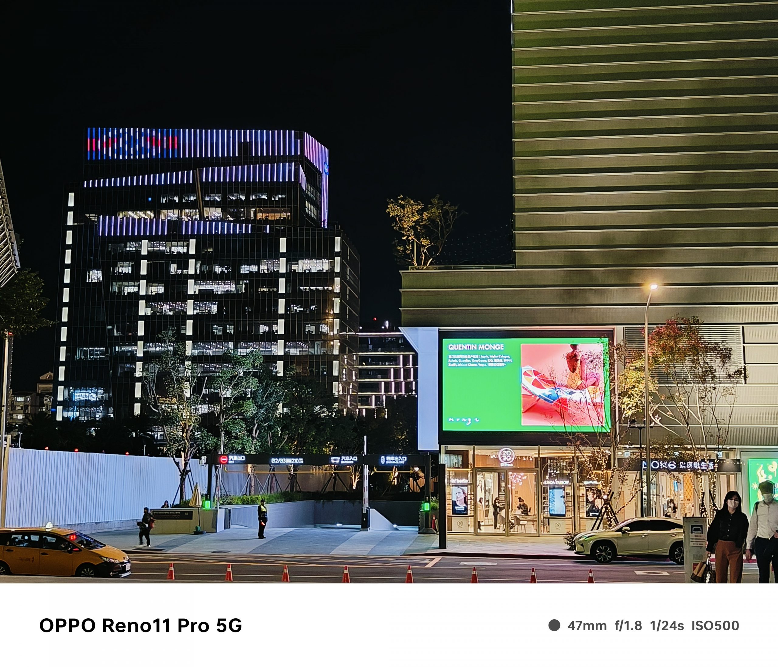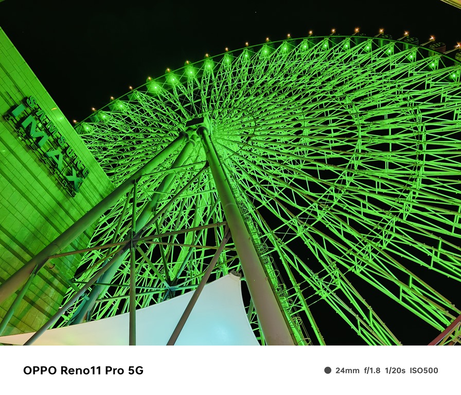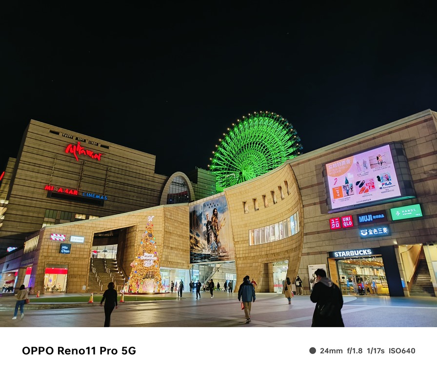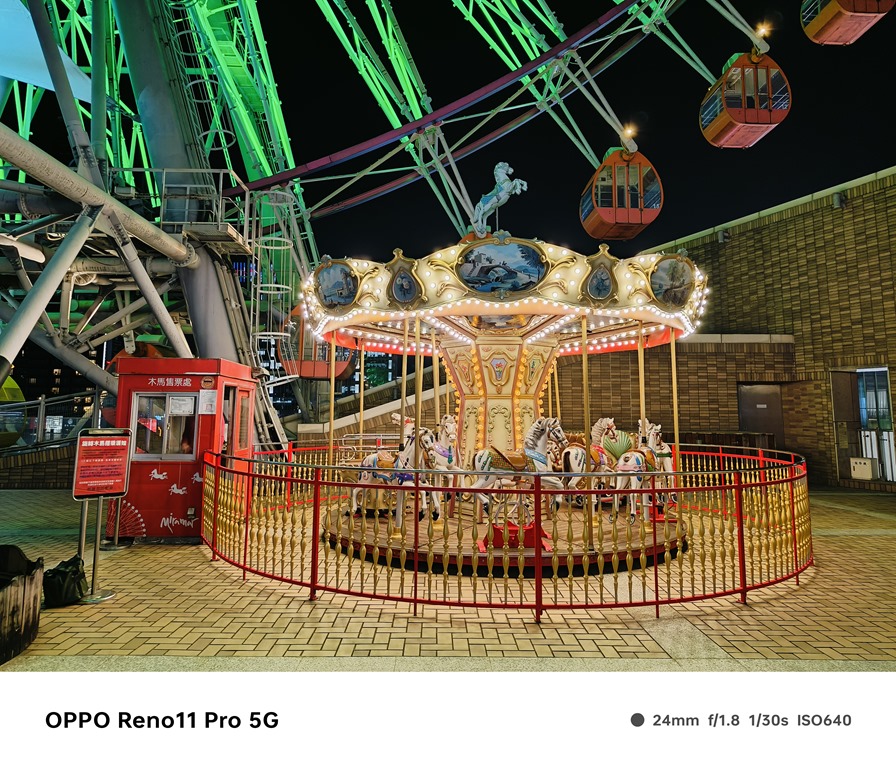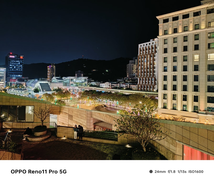 再來看看夜景表現,Reno11 Pro 內建夜景模式,但受惠於感光元件尺寸不小,加上大光圈配置以及演算法調校,直接使用一般模式拍起來照片效果就還滿好的,夜拍時照片發色會比較偏鮮豔一些,照片的銳利度也相對比較高,滿符合目前主流的喜好。