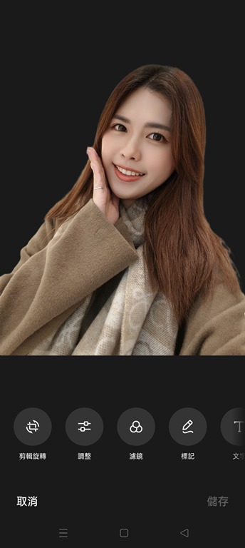 就像這樣,去背照片可以輕鬆的製作完成,這個功能還滿適合用在自己 DIY 拍證件照或大頭照,自己自拍完後只要一鍵去背就可以洗出白底照片了,很方便。