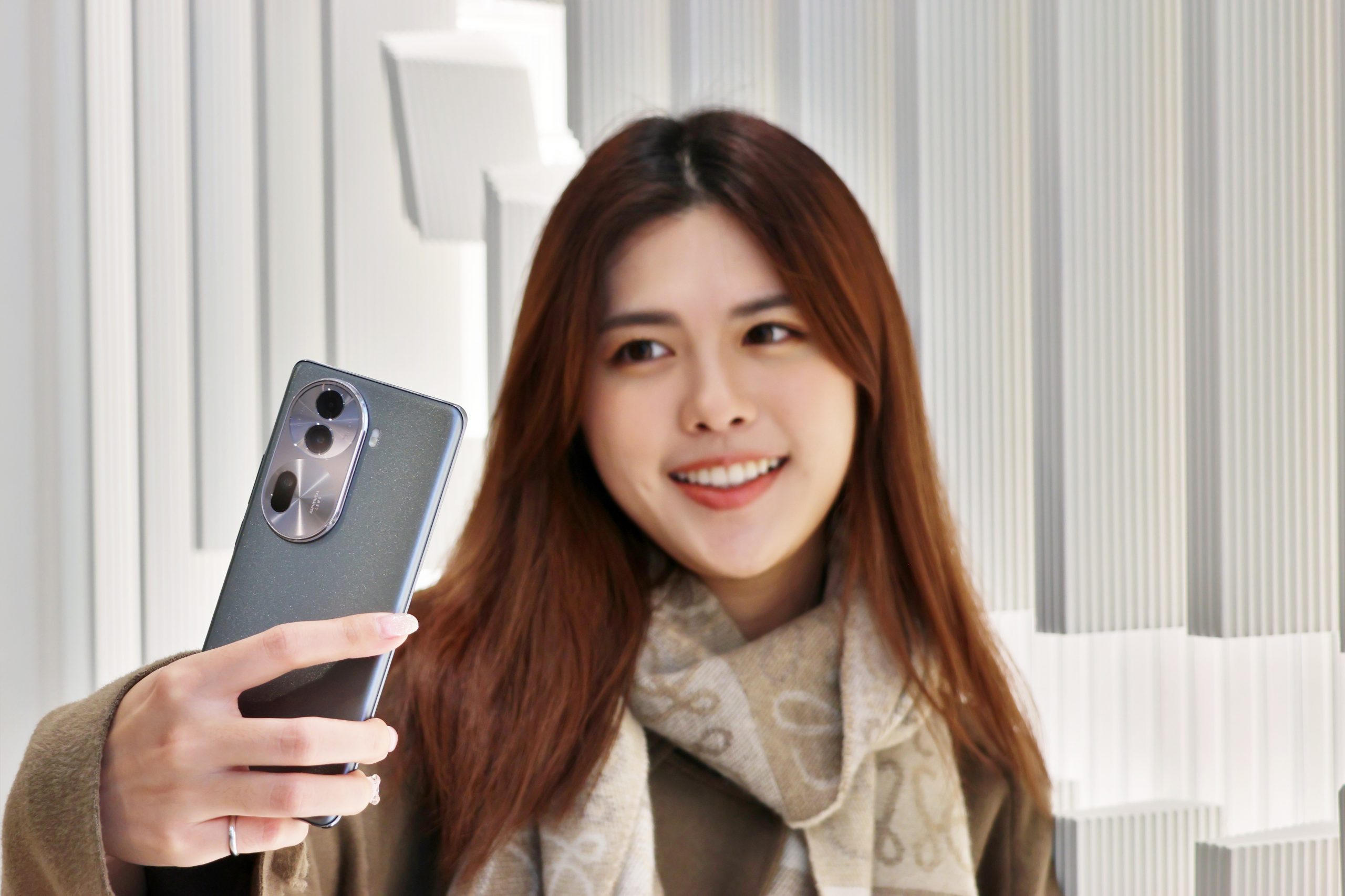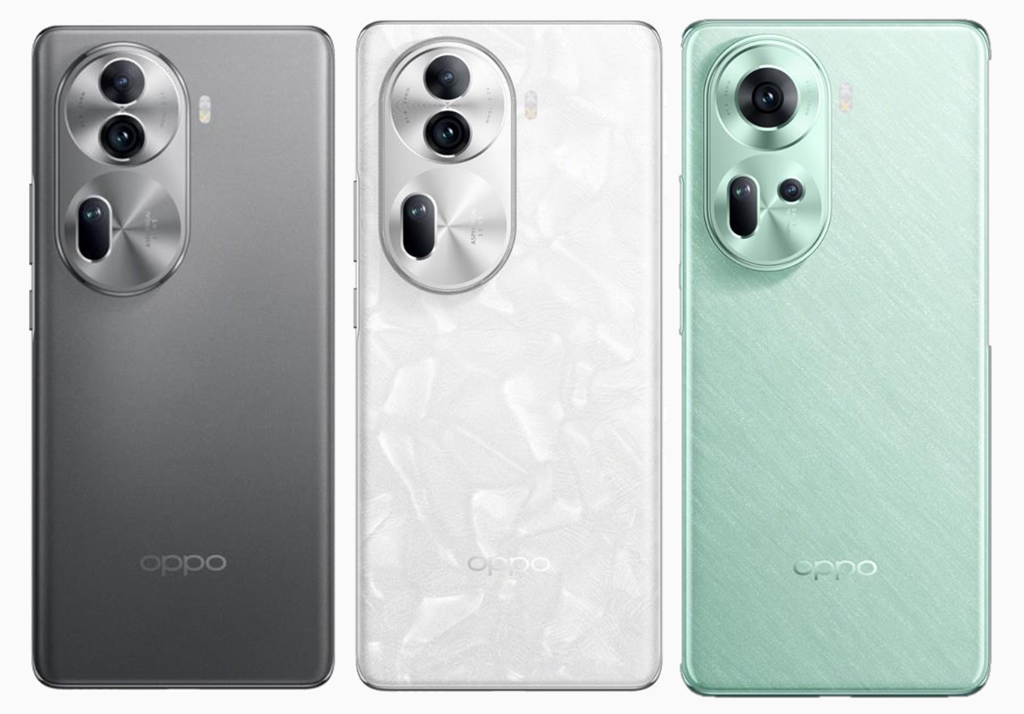 另外還有取自珍珠的珍珠白,珍珠白的機背設計除了是比較溫潤的白之外,還有像是雲母般的鱗片感,而另一款 Reno11 除了也有岩石灰,還有一款取自海浪的波紋綠呈現出層層疊疊的波浪的感覺。
