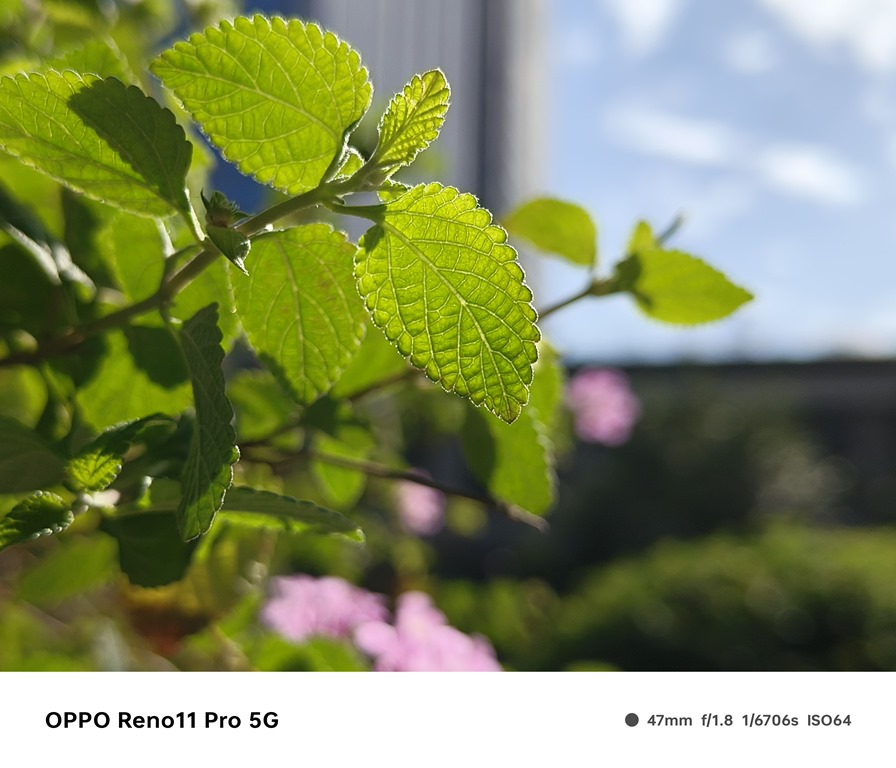 這一代的 Reno11 Pro 搭載 3200 萬畫素長焦鏡頭搭配旗艦級的 Sony IMX709 感光元件,長焦焦段相當於 2x 光學變焦,也就是約為等效焦距 47mm 左右,還滿接近許多攝影師愛用的 50mm 焦段,不論是用來拍攝人像或是日常紀錄都好用;另外還有一顆 800 萬畫素的超廣角鏡頭,可以用來拍攝更廣的視野。而且這次Reno11 Pro也下放了過往旗艦系列才有的超光影圖像引擎,光影表現也更有質感。