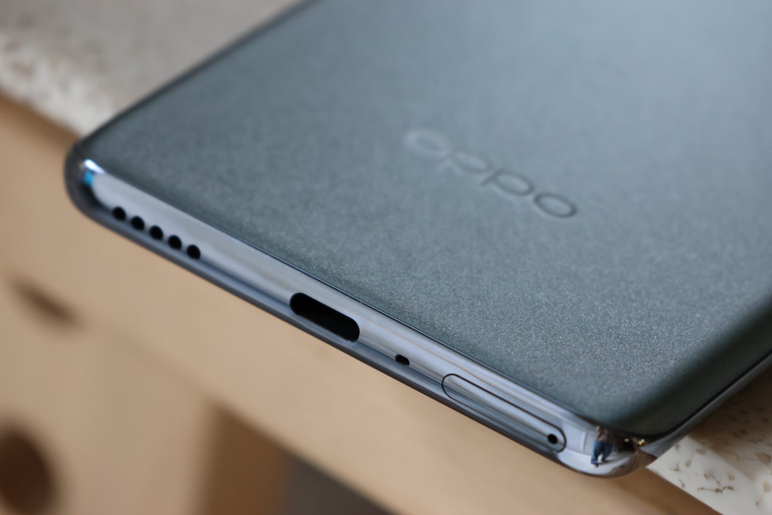 底部有揚聲器、USB-C 連接埠、麥克風和 SIM 卡槽。