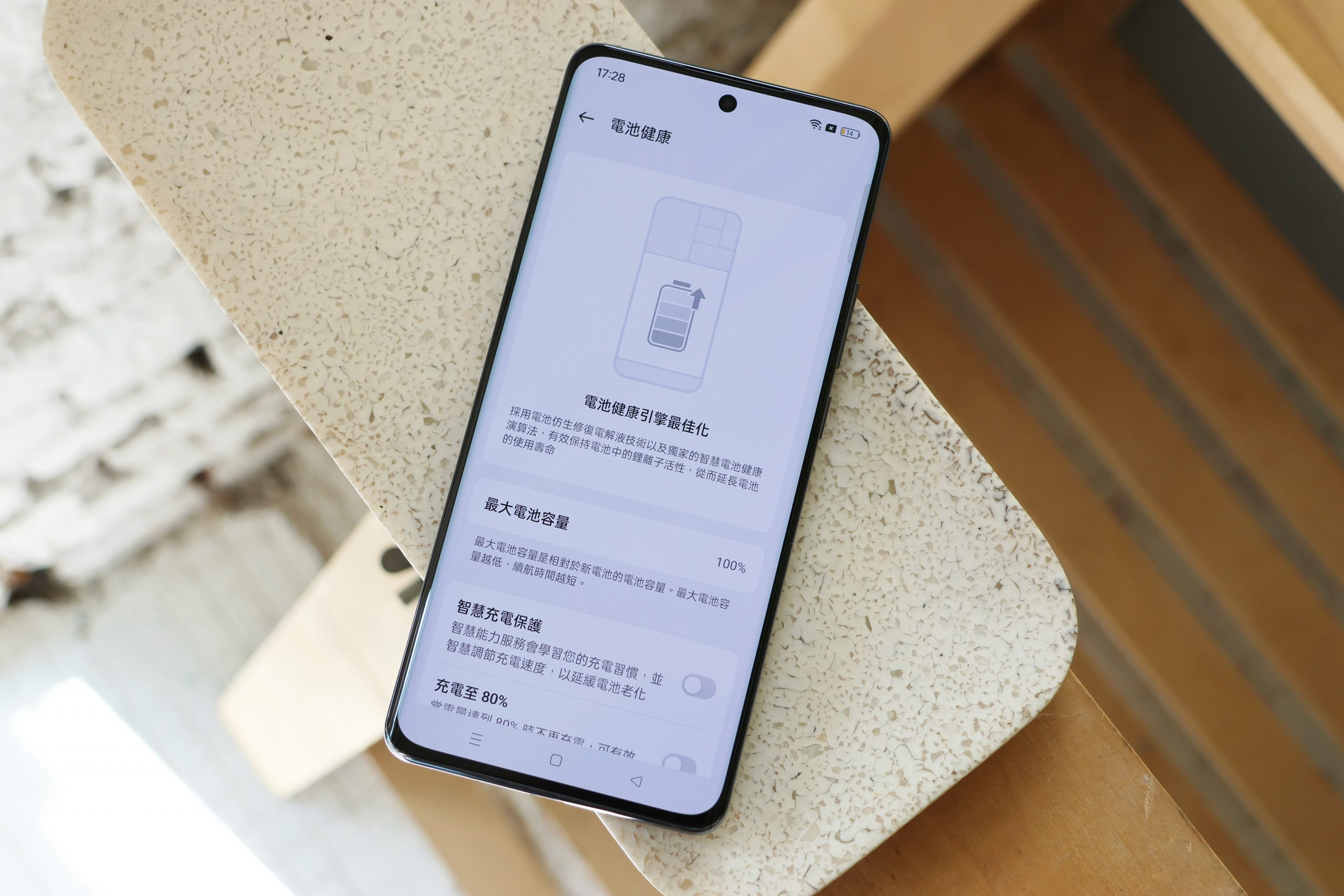 在設定裡的電池健康中,可以看到最大電池容量,也就是電池健康度狀況,也可以依照個人需求設定智慧充電保護,讓電池壽命可以更長。