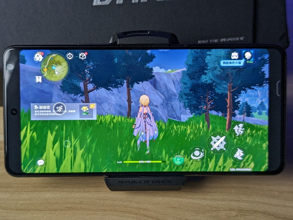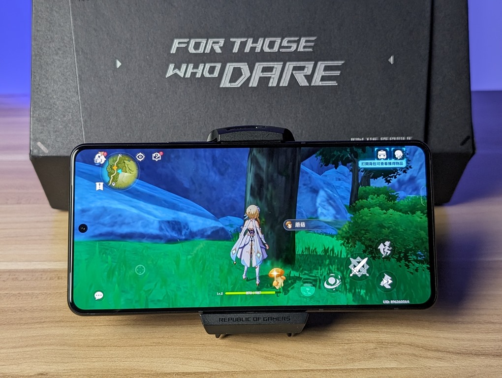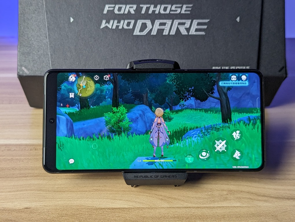 這次機身和前一代相比輕了 9%,重量只有 225 克,厚度也變得更薄,僅 8.9mm,握持起來的手感和一般手機更為接近一些。玻璃機背摸起來是有點磨砂材質的手感,優點在於不容易留下指紋,還滿容易維持清潔的,另外,這也是世界上第一台支援 IP68 防塵防水的電競手機。