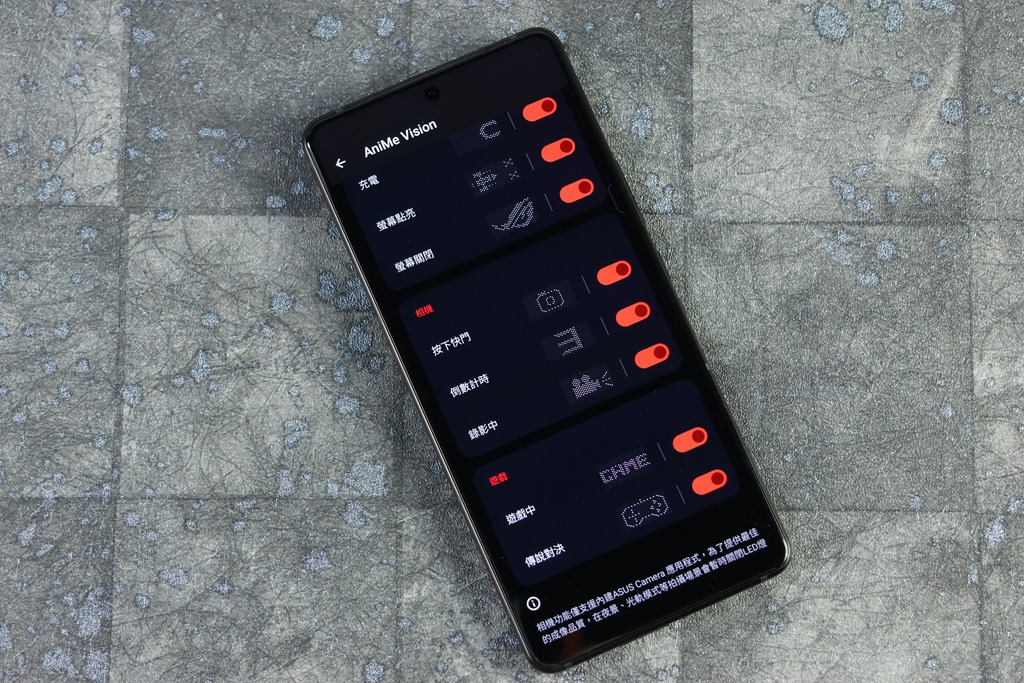 舉例來說,原本 ROG 就已經在系統內設定好一些指定的動畫,像是來電時出現來電符號、有通知時出現通知符號。