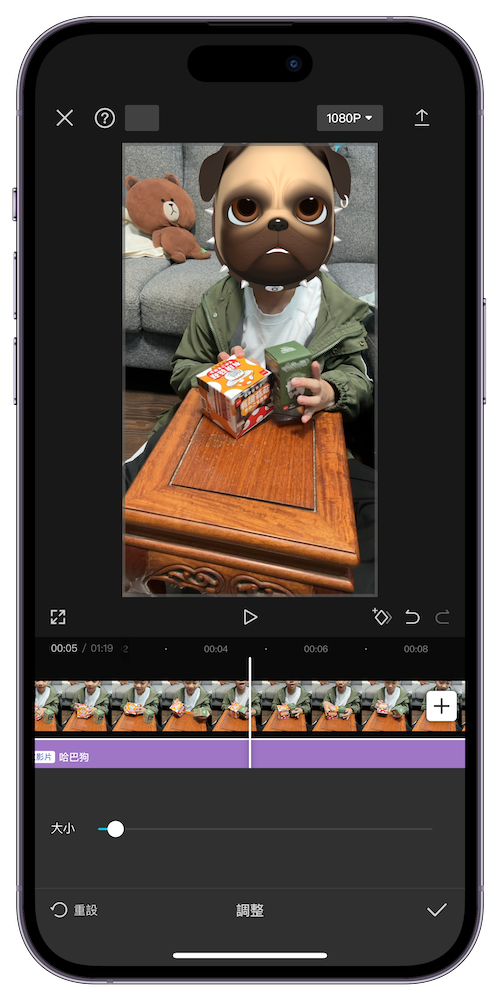 接下來只要把頭像的時間拉到跟影片一樣長就完成換臉的動作,是不是超輕鬆?