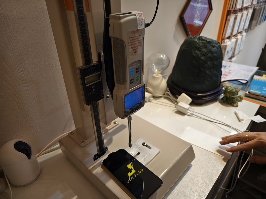 前面提到無色、透明、抗藍光外,玻璃保護貼最重要的任務就是保護螢幕避免刮傷,在不小心失手墜落、或是放後面口袋坐下時,也要避免碎裂。官方表示,最脆弱的邊角實測,可達 50kg 以上的壓力。不過當然要自己實測比較準,直接用壓力測試機來測試。