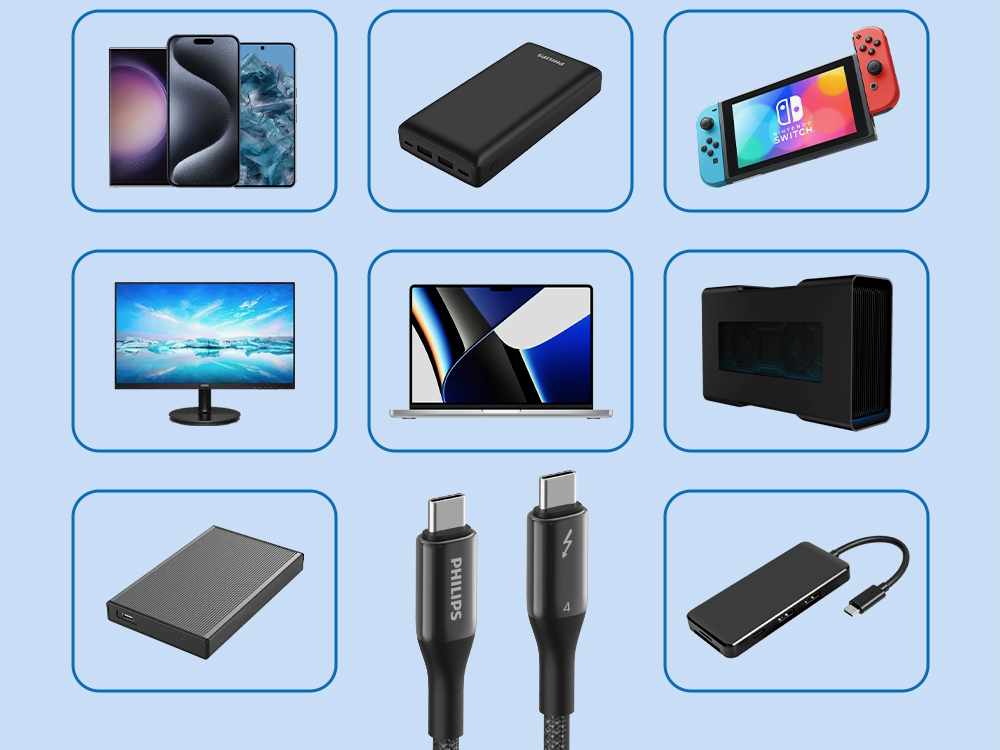 PHILIPS 同步發表 Thunderbolt 4 認證規格影音傳輸快充線(DLC4587C),同樣採用可抗折耐磨的編織材質所製成,可達到 240W 快充,傳輸速率達到 40Gbps,並且支援 DisplayPort 2.1 規格,此技術可連接裝置輸出一台 8K 畫質,或是輸出兩台 4K 影像,適合影音設計與自媒體工作者使用,建議售價 1790 元,即起上市。