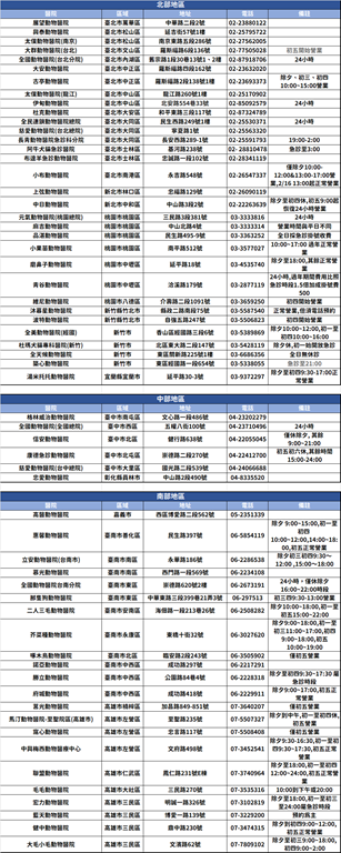 以下提供由法國皇家 Royal Canin 整理的春節期間營業動物醫院給大家,以備不時之需:
