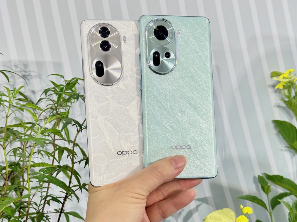 Reno 系列向來主打美型機身,透過精湛的晶鑽工藝和創新技術,完美融合科技與美學,本次 Reno11 系列外觀設計,巧妙地將大自然的元素融入其中,創造出具獨特紋理的機身設計。Reno11 系列 共提供珍珠白、波紋綠、岩石灰三種自然風格;「珍珠白」採用雙紋理技術將三種不同紋理融入玻璃機身, 在微觀層面上以傾斜蝕刻對玻璃進行更精細的設計,讓機身隨不同角度展現自然光澤,如同海上珍珠母貝閃 閃發亮;「波紋綠」設計則運用蝕刻工藝,創造出如同絲綢般的絲絲紋理,彷彿晴空萬里下的海面波紋,隨 風波動的絲滑與優雅;「岩石灰」機身採用 OPPO Glow 工藝,如岸邊岩石隨光影流轉展現的內斂色澤。