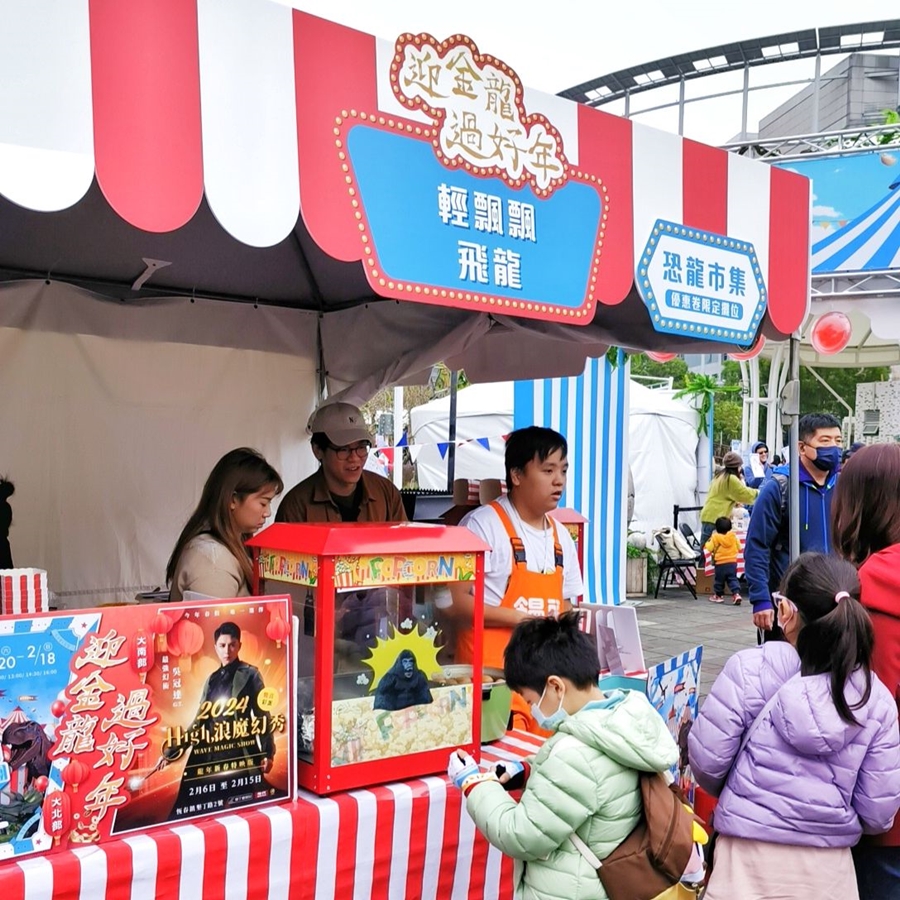 ▼ 2024尋龍祭 恐龍馬戲團擬真劇場表演場地就在台北市立兒童新樂園裡頭,看完恐龍還可以順道玩兒童新樂園,包準小朋友嗨翻天!