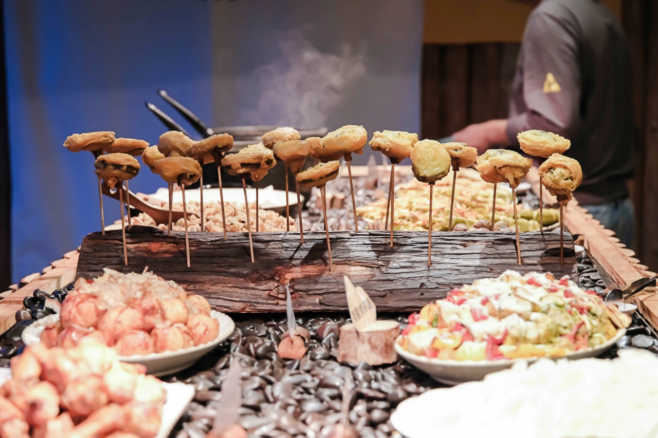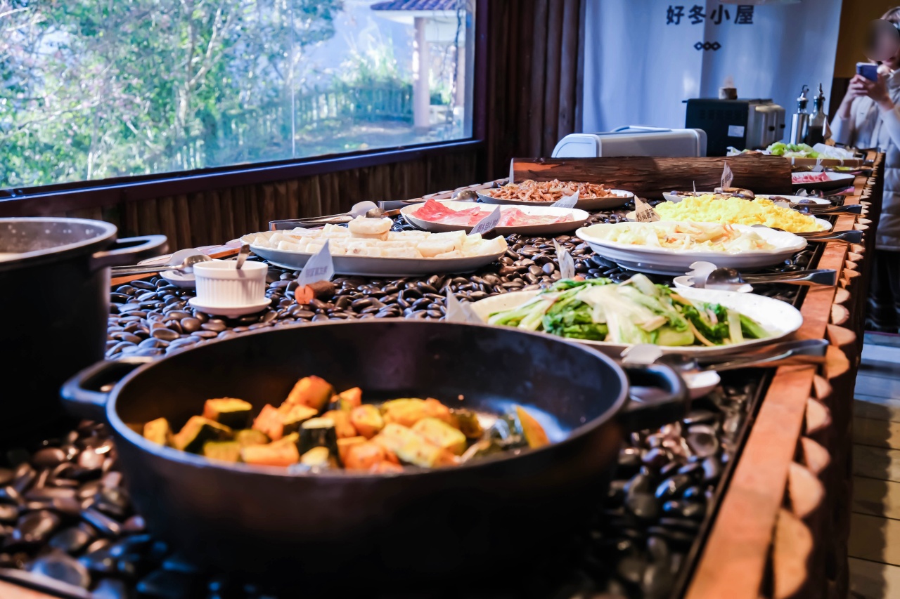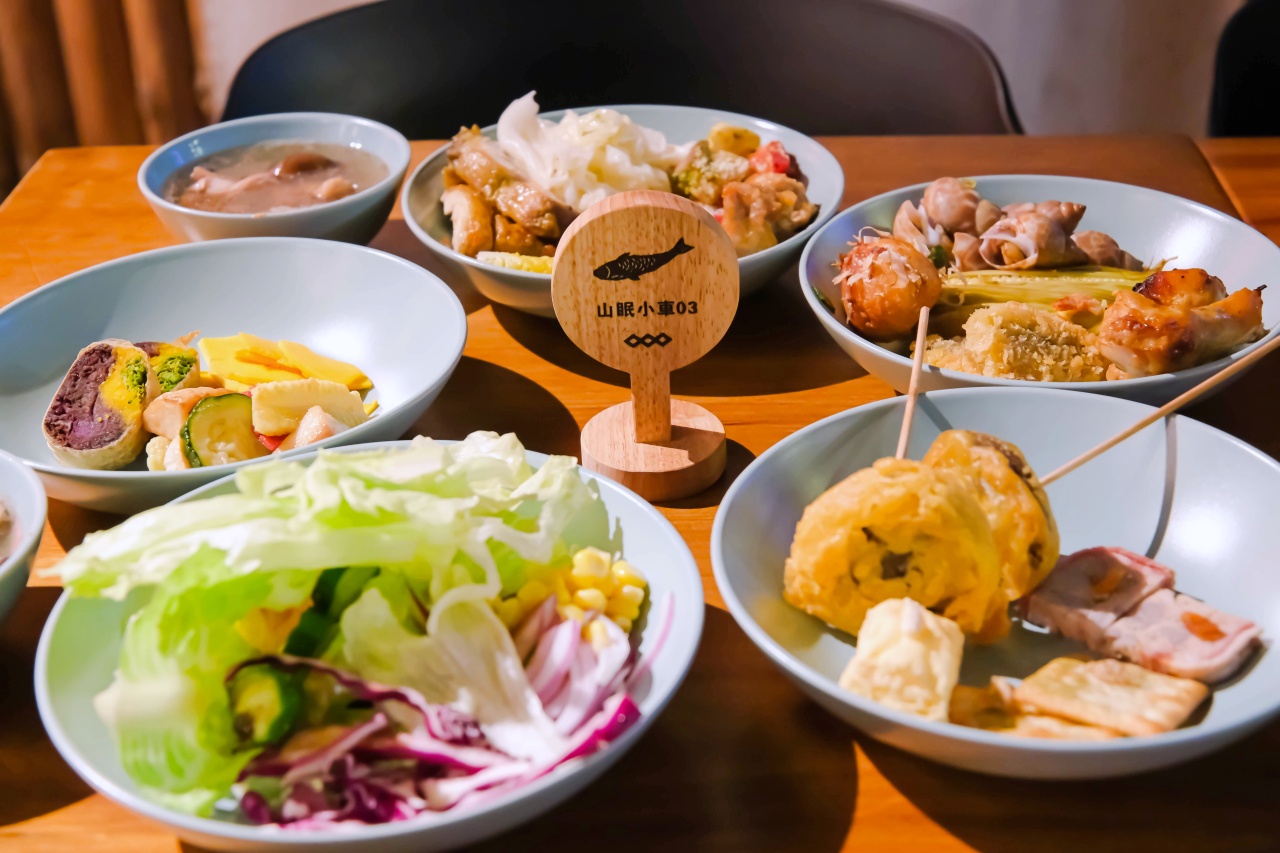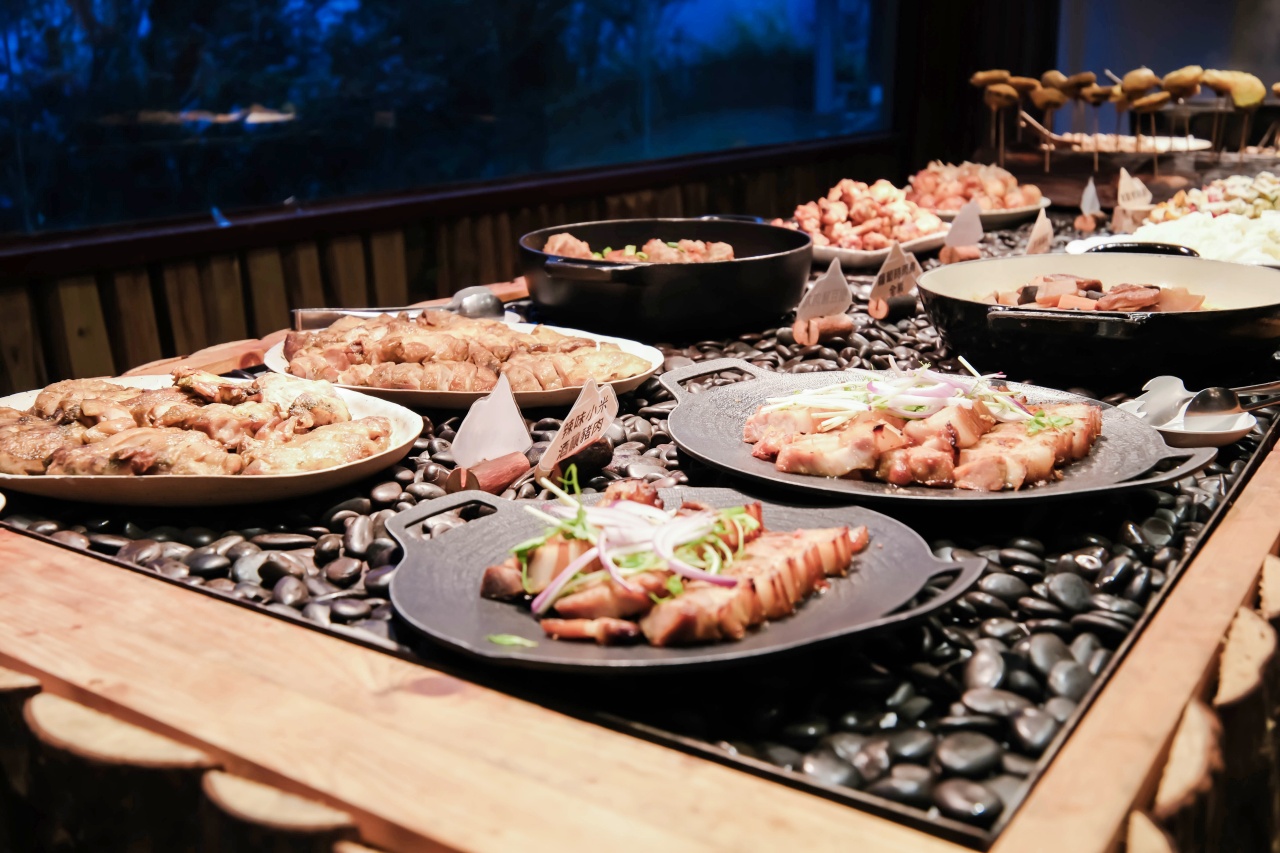 晚餐的料理是以原住民特色食材入菜,像是刺蔥、馬告、樹豆等等,以泰雅族碳火烹調結合法式燉煮方式,做出一道道美味餐點,用創意方式讓旅人們感受最親切的款待。