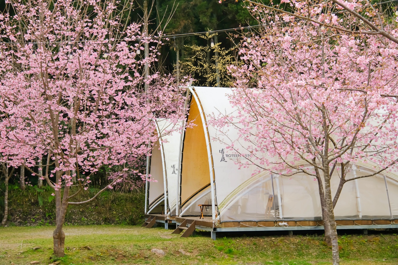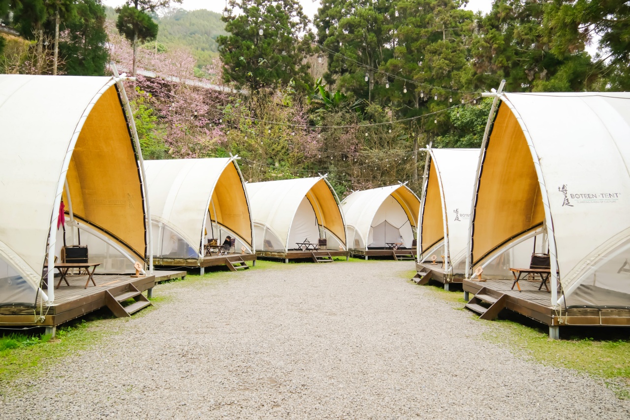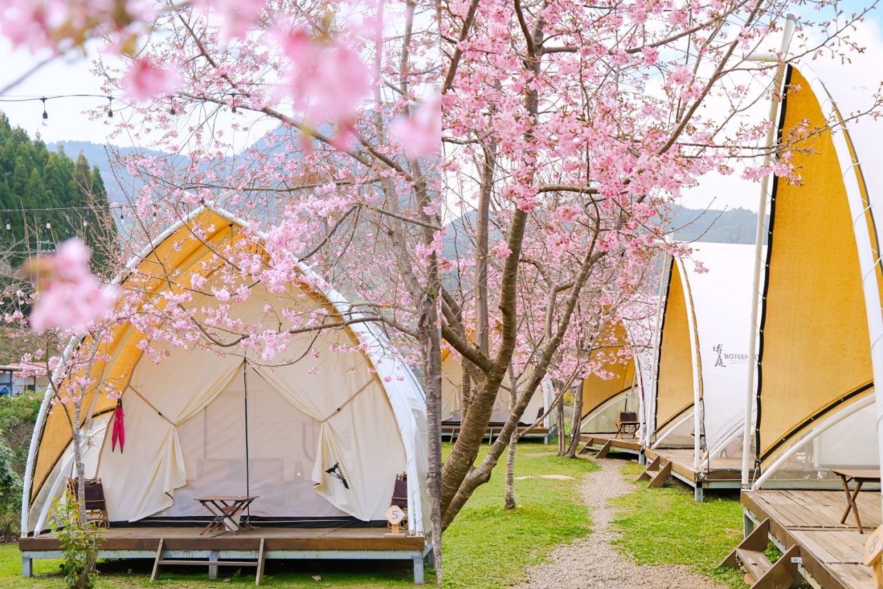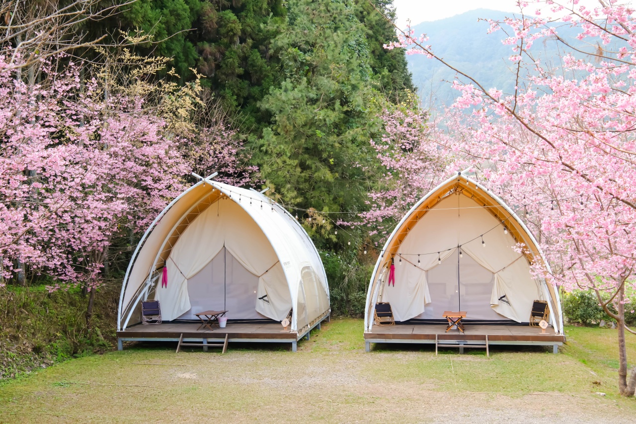 豐收地 (帆船帳): 豬飛最推薦這裡!提供戶外桌椅,可住 2 ~ 5 人,櫻花林最佳位置,有公用衛浴,鄰近餐廳
