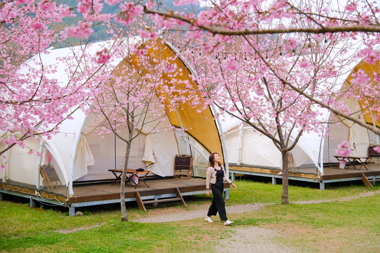 新竹超人氣的豪華露營【蟬說:霧繞】園區櫻花正盛開!「豪華露營Glamping」風潮來襲,這裡一直是口袋名單,最新推出的露營車也深受豬飛喜愛,提供一泊二食在地美食料理、夜間DIY烤棉花糖、山谷裡仰望滿天星空、一年四季都有美景的森林渡假營地,真心推薦約閨蜜、情人、家人一起來。趁著天氣正好,豬飛趕緊拉著漢斯先生拖著一咖皮箱入住【蟬說:霧繞】,從台中直奔新竹縣五峰鄉,大約3個小時抵達,這裡2 – 3月櫻花季、5月螢火蟲季、5 – 7 月繡球花、7 – 8 月甲蟲季,隨時來都好熱鬧。