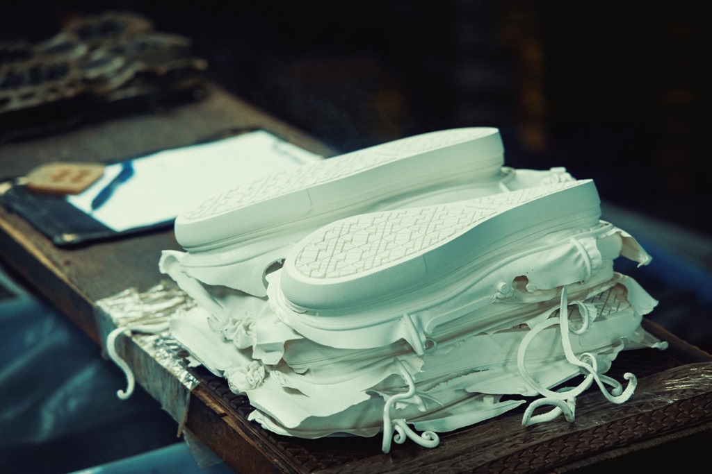 考量到鞋底耐磨與彈性功能的需求,以天然橡膠與日本進口的合成橡膠混合打料,加入專屬橡膠大底配方拌料混色,最後再進行燒製與修剪步驟。頂恒橡膠張國裕董事長補充說道:「很多人都以為天然的橡膠是橡膠大底的保證,但是為了達到耐磨或彈性的需求,需要混合合成橡膠,而日本進口的合成橡膠,則是製作出完美橡膠大底的重要秘訣。」。