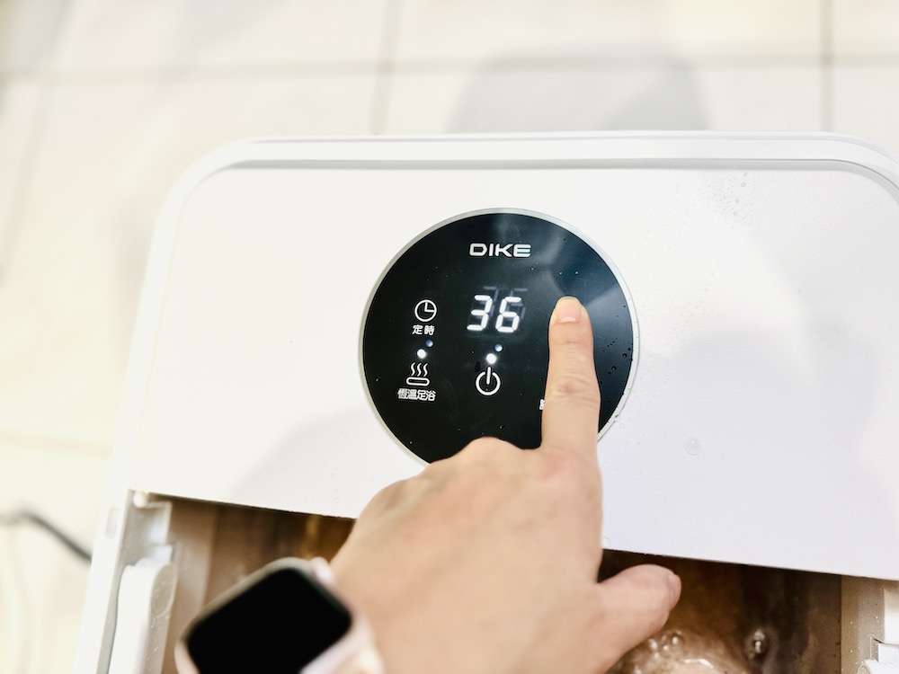 通常泡腳時間建議是一次 20 分鐘,所以當我們舒服的享受完 20 分鐘後,善後,也是很重要的一環。想想如果泡完這麼舒服,但收拾起來很麻煩,這不是反而讓整段放鬆的體驗過程都「整組壞了了」嗎?DIKE 足浴機雖然不是使用滾輪的移動方式,我們還是得自己提起來去倒水,但所幸使用排水孔,還是隱藏式的一鍵排水方式。只要將排水位置對好排水孔後按下開關,就能不必力大如牛很優雅地完成善後囉!