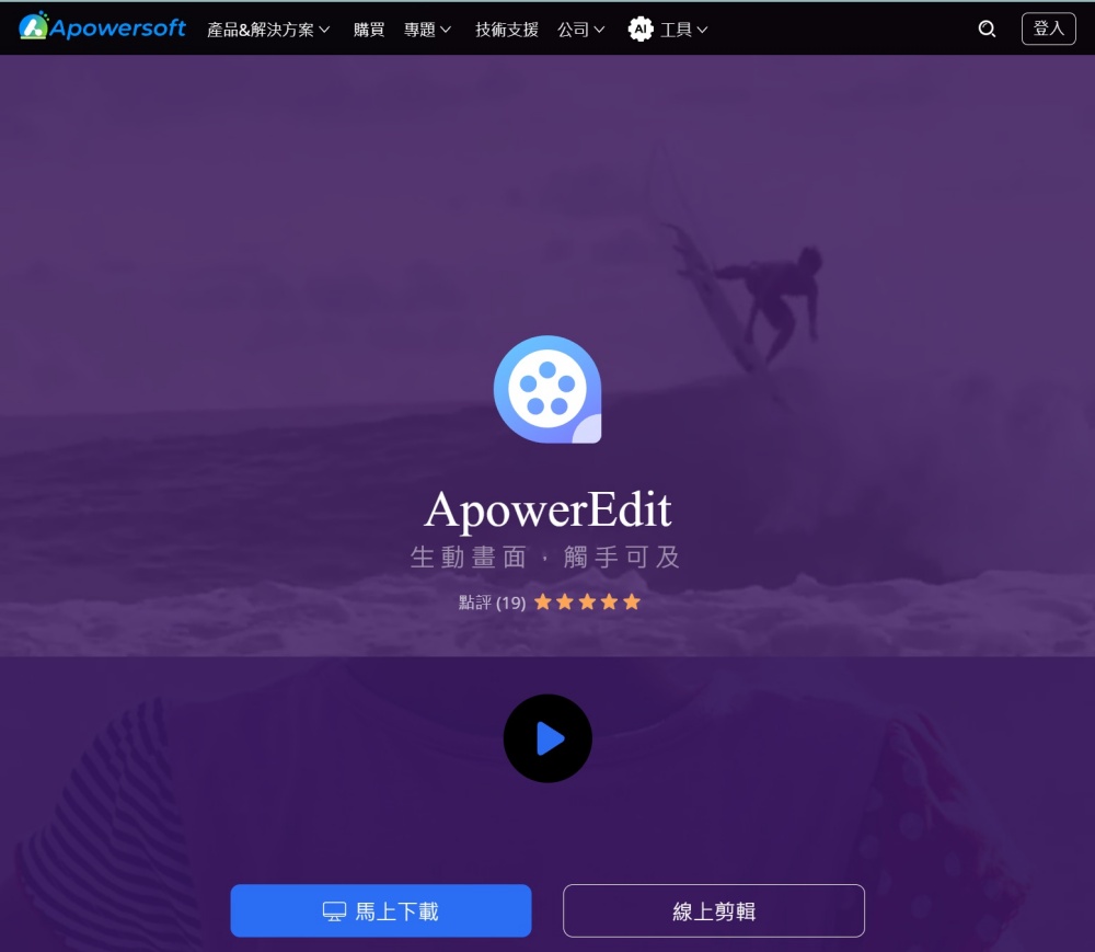 ApowerEdit 來自 WANGXU TECHNOLOGY,他們喜歡多品牌行銷,本軟體中文名「影片編輯王」。ApowerEdit 軟體還有免安裝線上影片剪輯版 & 專業版(Pro)之區別。線上版最高只能剪片 100MB 的影片,超過的話便需要安裝 Pro 軟體。此外,部份功能僅提供在專業版,例:影片音軌合併。