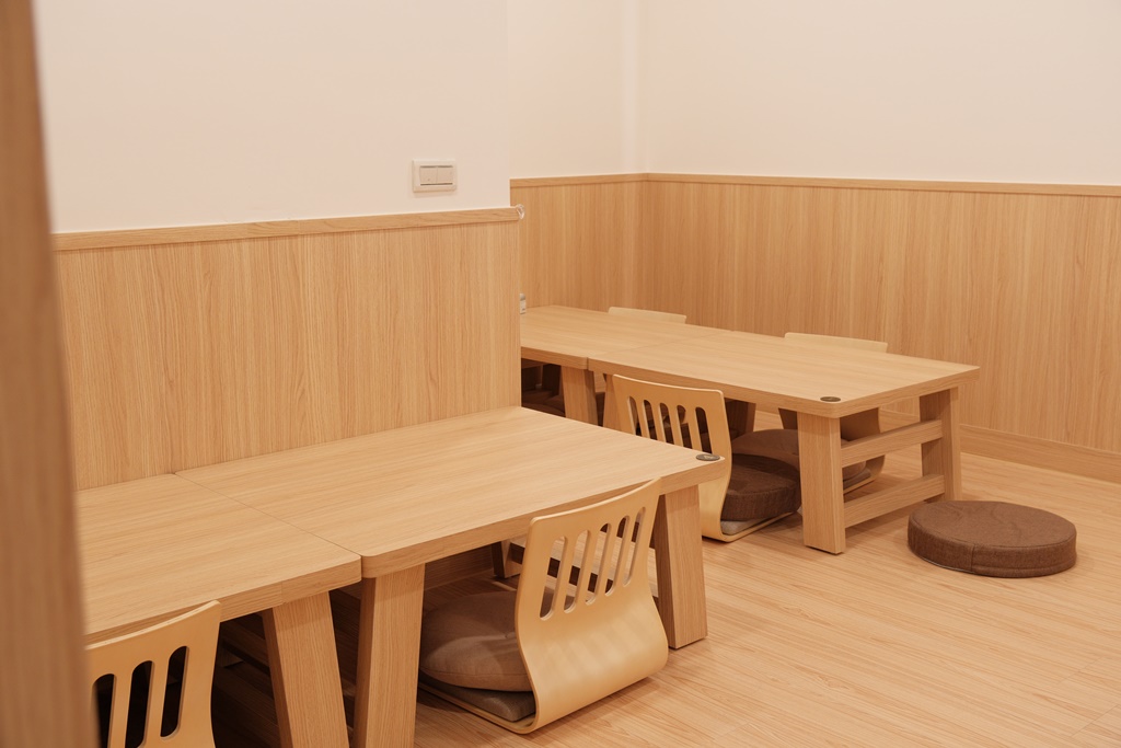 二樓也有座位,一區是很像一蘭拉麵的個人隔間座位,另有一間包廂,裡面是木地板矮桌,很有日本味道,這兩區我們當天用餐都沒有開放,不確定什麼時間點才會開放~