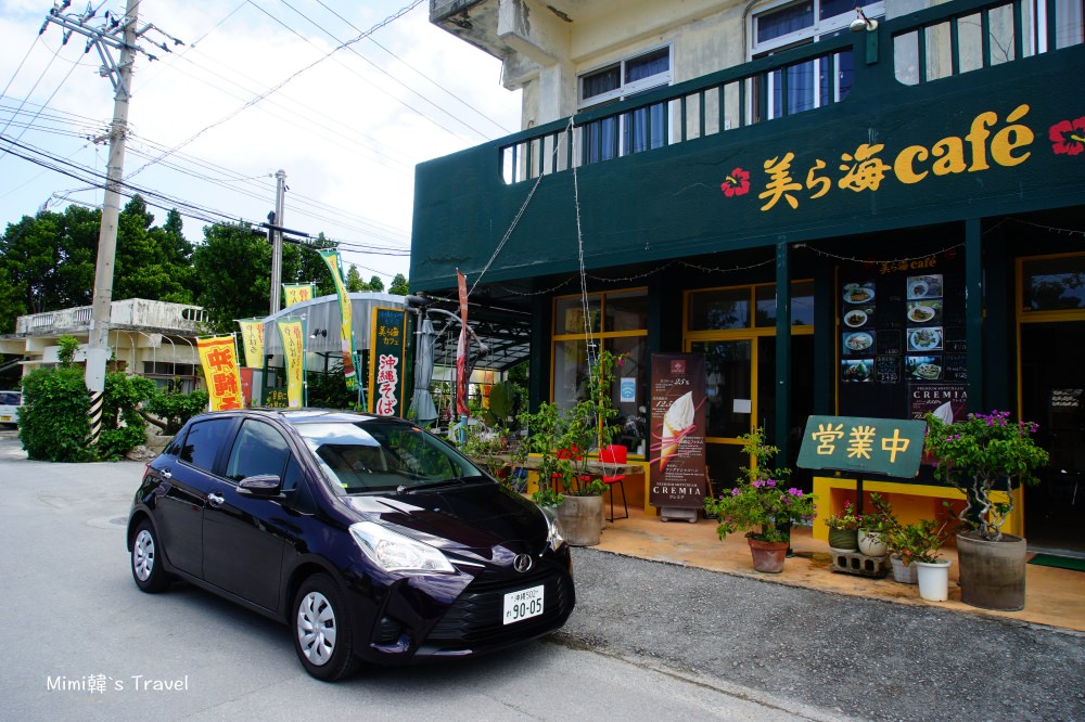 村莊裡也有幾間小餐廳、咖啡廳和紀念品商店,像是這家在停車場附近的美ら海カフェ(美麗海Cafe),店內供應咖哩雞肉飯、披薩等餐點,也有大家很愛的CREMIA冰淇淋,而且很貼心的有中文菜單唷~