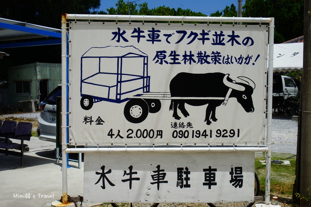 剛走進備瀨福木林道就會看到水牛車駐車場,這裡可以搭乘水牛車來一趟原生林散策。四人一車是2,000円,我們現場看搭乘的人還蠻多,在林道中時常會看到緩慢行進中的水牛車
