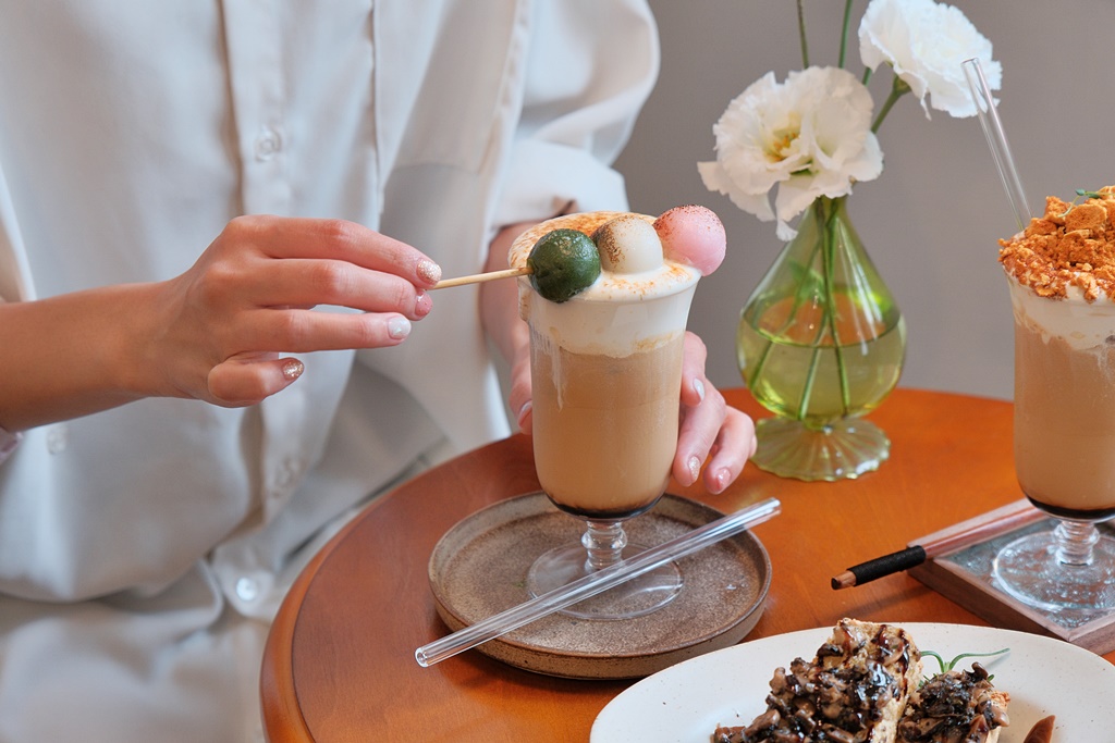 絕對可以為了這杯再訪!上面的糰子可愛又好吃,口感扎實又Q,下面是以燕麥奶為基底的拿鐵,搭配沖繩黑糖,整體香醇順口、沒有一絲苦澀,好好喝~