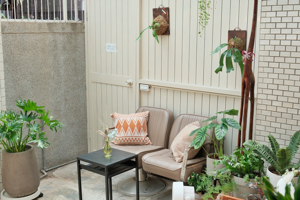 通過髮廊最裡面還有一個後庭院空間,有設置三組座位,想坐在這邊喝咖啡也是可以的唷!