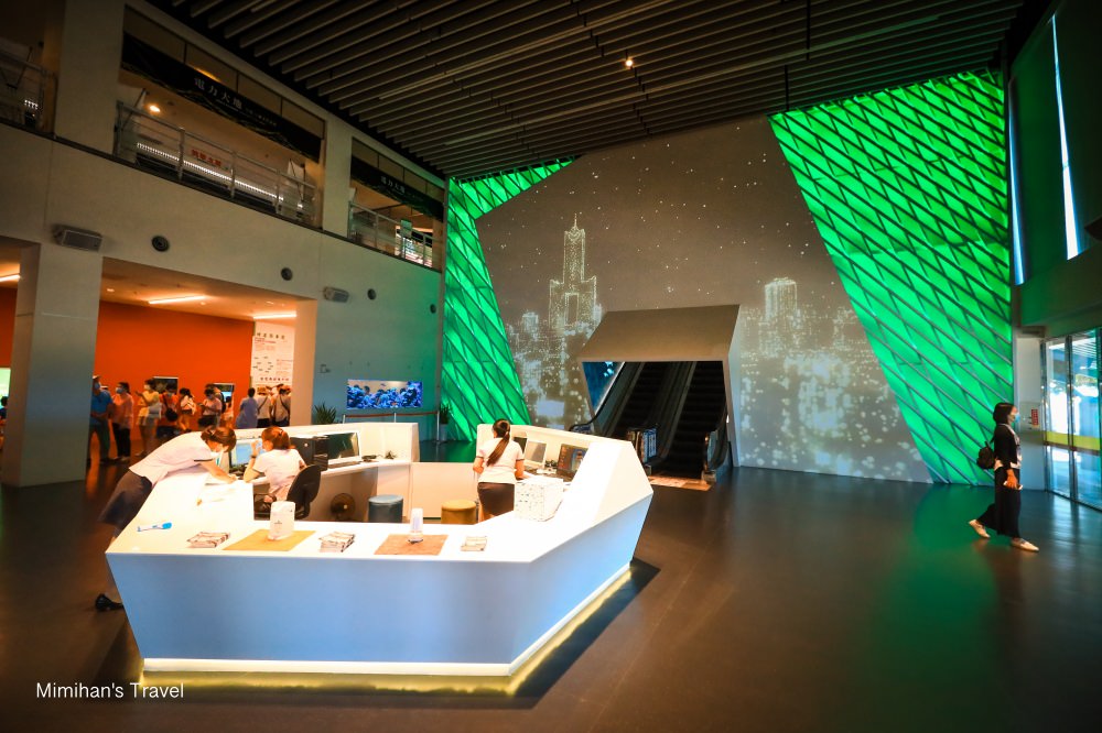 走進台電南部展示館防疫期間會有人在入口處量體溫,也規定大家都要戴口罩以策安全。而一樓展示區共設計了即時資訊區、共生、深耕、永續、期刊區、台電影音、4D立體劇場及地震體驗屋等八個主題空間。