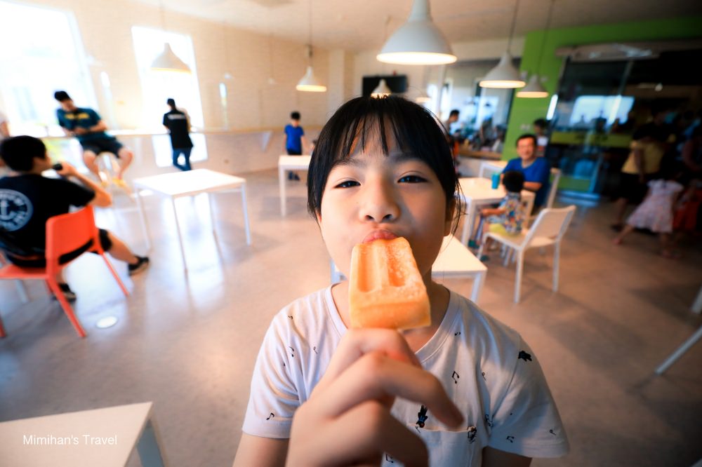 順著參觀動線走到最後就會來到咖啡屋,裡面最特別的是除了可以點咖啡飲料之外,還有賣海水淡化的冰棒,由於海水淡化後沒有雜質,製成紅豆、花生、芋頭、綠豆、巧克力和百香果等口味的枝仔冰棒別具風味。