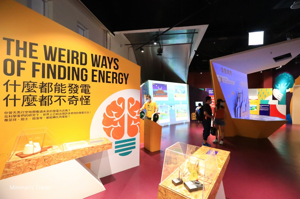 有動態也有靜態展示,想不到除了大家常見的火力、水力、風力、核能發電之外,科學家們還天馬行空的研究出許多奇特的發電方式,像是足球、起司、微藻等都可以轉化成電能,太神奇惹。