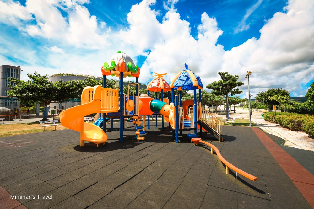 也有設置兒童遊戲區,不過這天午後來天氣超級熱,大家都趕緊躲到室內去吹冷氣。