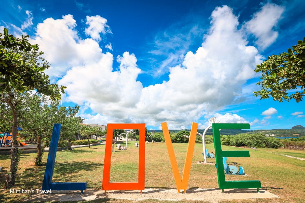 停車場旁邊就能看到台電南部展示館的大片草皮,上面一座巨大的LOVE造景是大家拍照取景的好地方,天氣許可也可以讓小朋友奔跑放風。