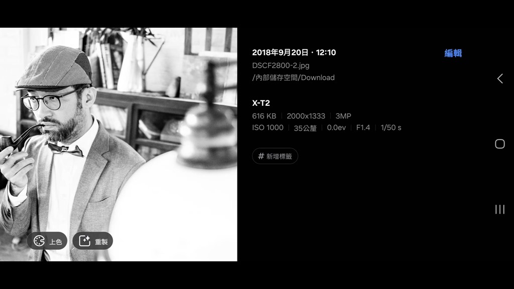 不過這功能並不是每張黑白照都可以用,目前測試只要有人的照片都可以啟用這功能,有明顯的公仔或是動物,也能啟用,但風景照就無法了。