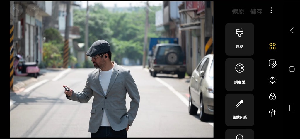照片變成卡通漫畫風格,這功能很多手機或 APP 都有,這次三星也把他這功能加了進來,但要找到這功能不是那麼容易,因為藏的很深。首先按下編輯後,點選最邊邊那個四個圈圈的圖示,就會炸出許多功能,將功能滑到最後面可以看到風格,點下去就會出現。