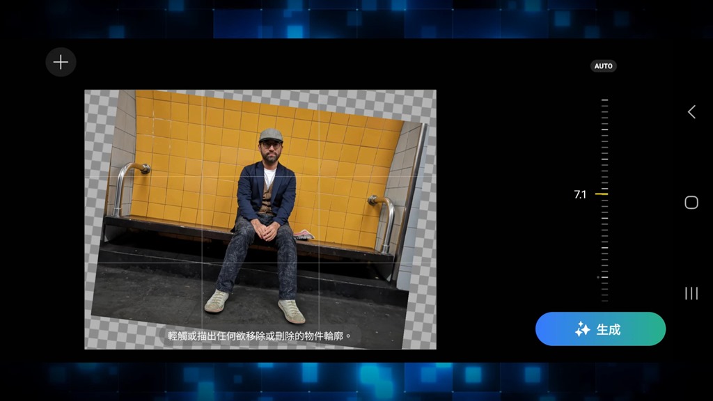 AI 水平調整是 S24 AI 主要功能之一,但不少朋友都抱怨為什麼沒有 AI 擴圖功能,這功能也就是將背景往外延伸的功能。不過其實這也可以裡用 AI 水平調整來完成,只是要進行多次。