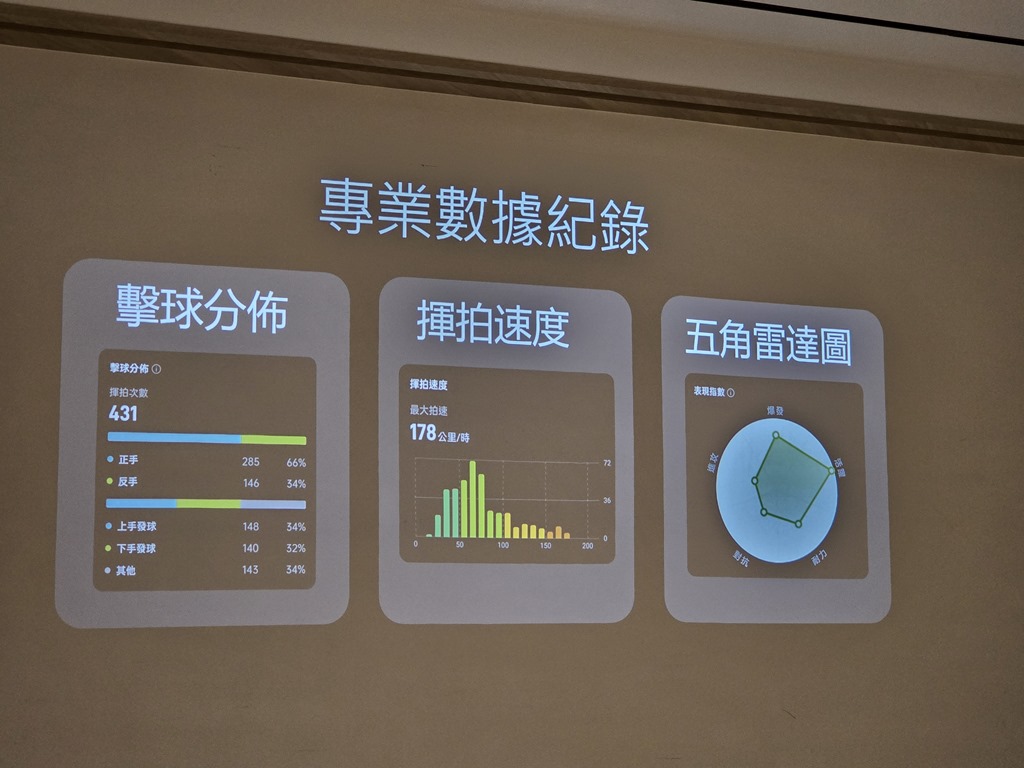OPPO 更有著專業羽毛球模式,可蒐集運動過程中的專業數據,包含揮拍動速度、揮拍次數、正手、反手等數據,並從爆發、進攻、對抗、耐力、活躍等五個維度進行圖像化分析,幫助使用者以科學角度分析打球風格、提升訓練成效。