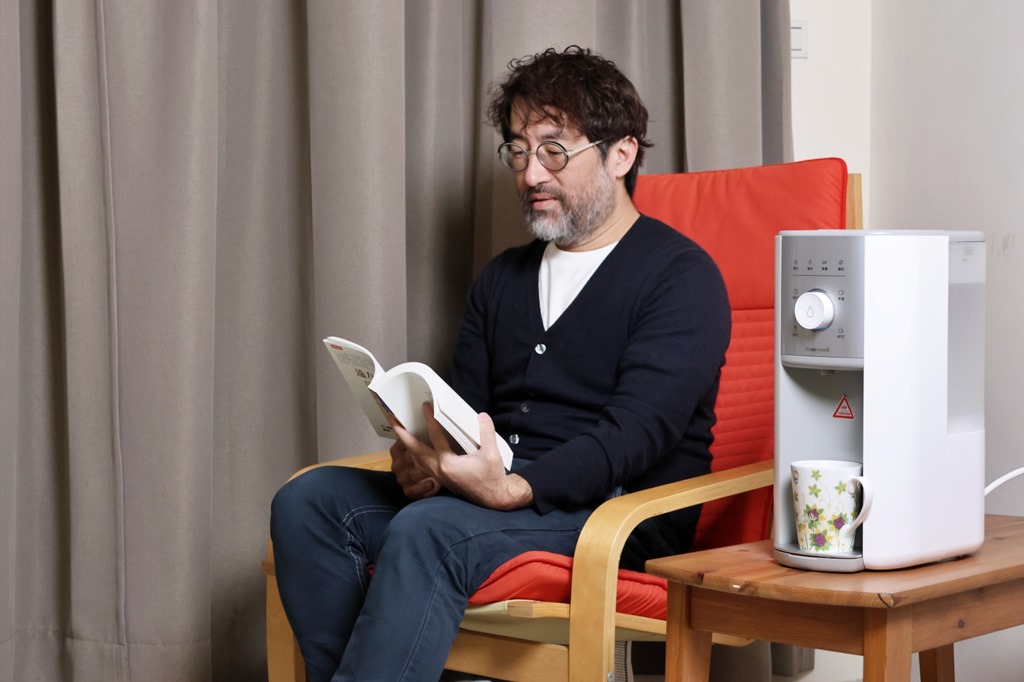 這款淨水器體積比同級的機種縮小 50% 左右,重量也減少 70%,很適合放在租屋小空間,或是跟我一樣直接放在辦公桌旁邊。裝好水之後插電就可以使用,免安裝、免鑽孔拉線,想喝杯水還不用離開座位,如果有新生兒的家庭,把淨水器放進房間裡,半夜起床泡奶還不用出門房,真的無敵方便。