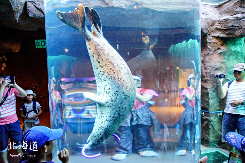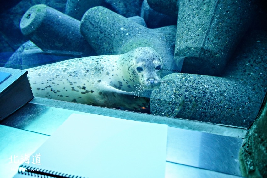 海豹館也是旭山動物園的大熱門,門口一隻隻用手繪的海豹,清楚的寫明他們的體重與身長,比比看哪種海豹最大尾~