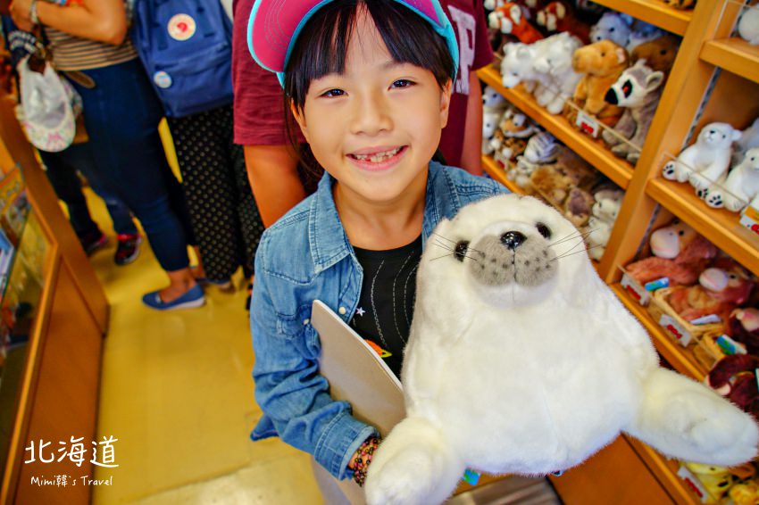 當然啦!最可怕的地方絕對就屬紀念品商店。小從可愛動物鑰匙圈、磁鐵,大到絨毛娃娃,還有帽子、T恤、襪子、文具用品、繪本⋯等商品一應俱全,且通通都是”旭山動物園限定“,走出去就買不到了。這天明明動物園的人潮並不算超多,但賣店裡面卻被擠得水洩不通,大家都狂買,太邪惡惹><“