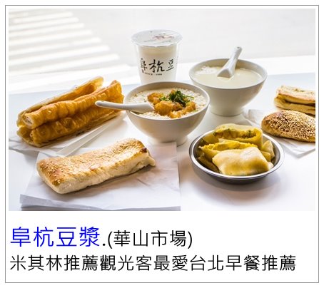▼阜杭豆漿創立至今已經超過60年,連續兩年榮獲米其林必比登推薦,交通方便搭捷運或公車都可到達。建議大家捷運直接坐到善導寺站5號出口,右手邊就是華山市場。