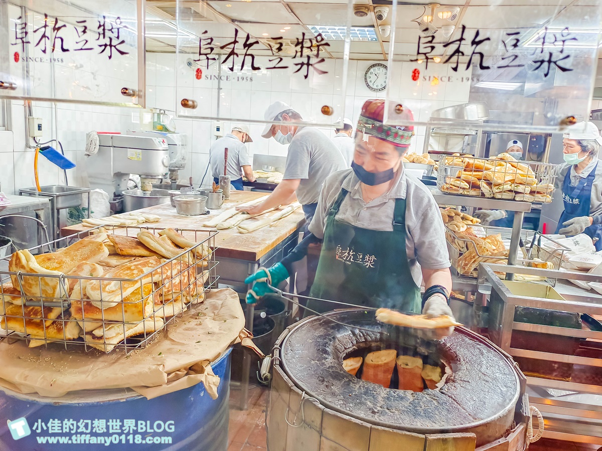 ▼一上二樓就會看到阜杭豆漿的店面,開放式廚房有透明櫥窗,可以看見他們在製作燒餅油條的過程。