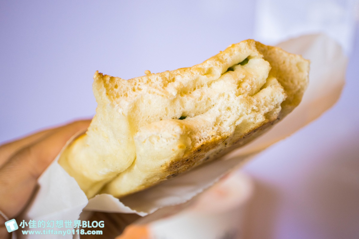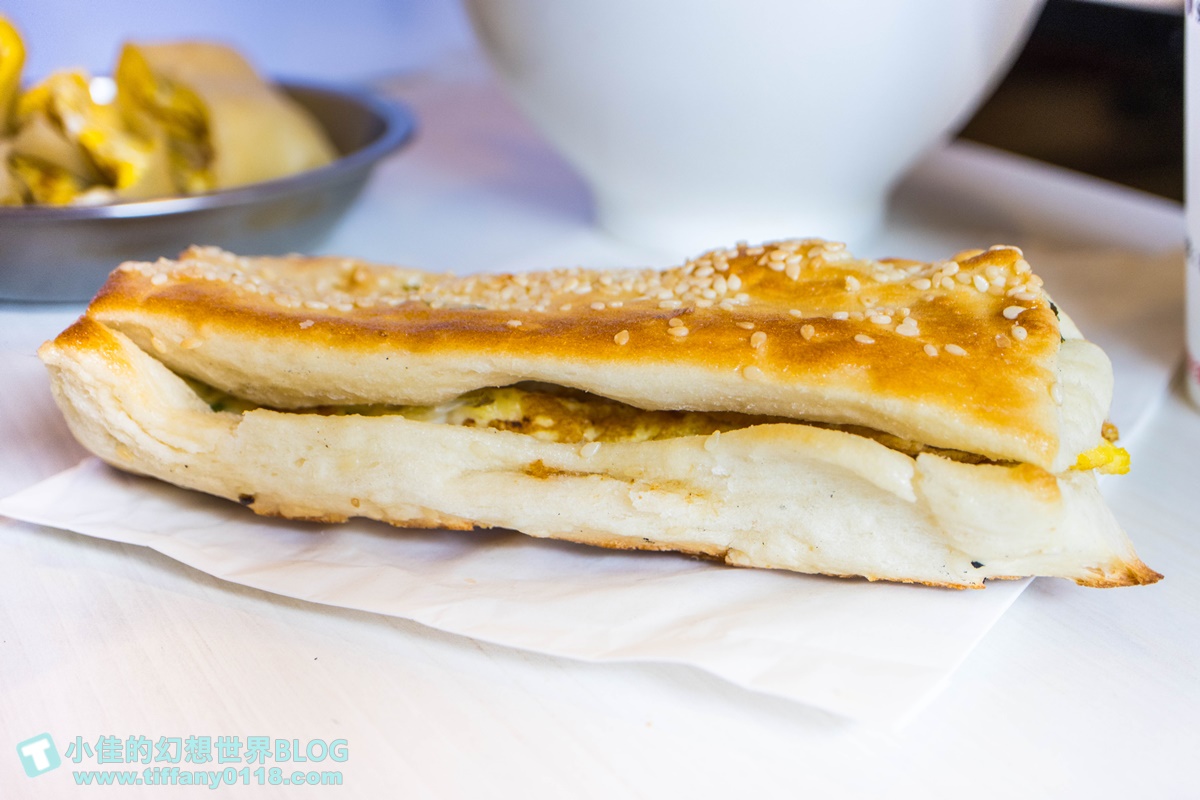 ▼厚餅夾蛋裡面的蛋也不是一般荷包蛋,而是成本比較高的蔥蛋,所以厚度上也滿有的。這樣跟厚燒餅搭配起來才會剛剛好,不會咬下去都還是只有厚燒餅的麵粉香而已,是吃的到蛋香的口感。
