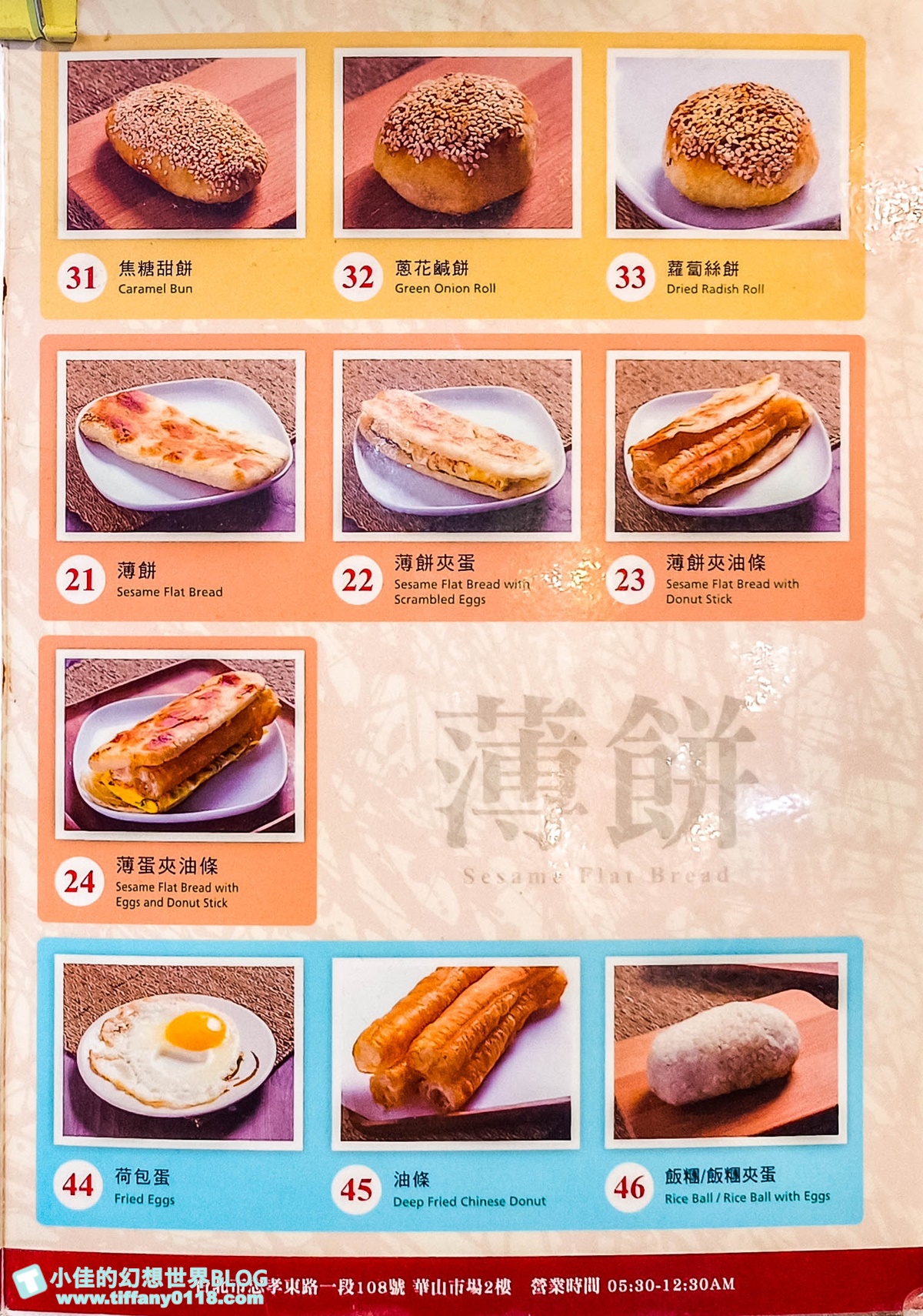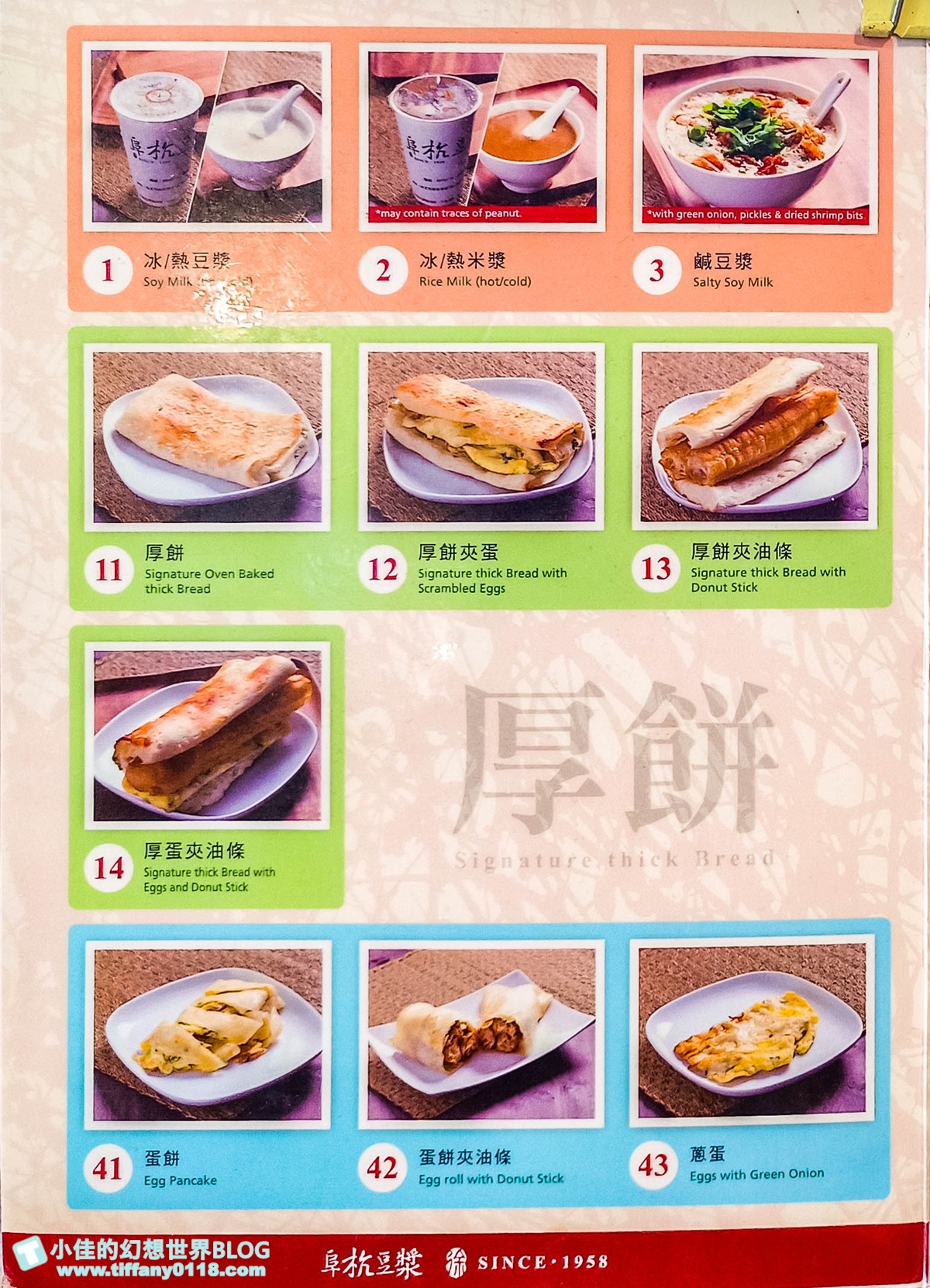▼阜杭豆漿總共有22個品項,這次一口氣點了8種,網路上大家推薦的我幾乎都點過一輪了。其中有幾樣我滿推薦一定要點的:豆漿、鹹豆漿、厚燒餅、薄餅夾油條、焦糖甜餅、蛋餅,如果第一次來阜杭豆漿不知道要點什麼的人可以照著推薦點來吃吃看。