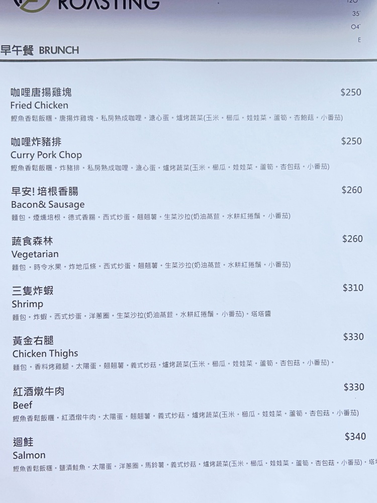 這裡提供有咖啡飲品、非咖啡飲品、甜點、早午餐,基本上涵蓋了早餐、午餐、午茶。