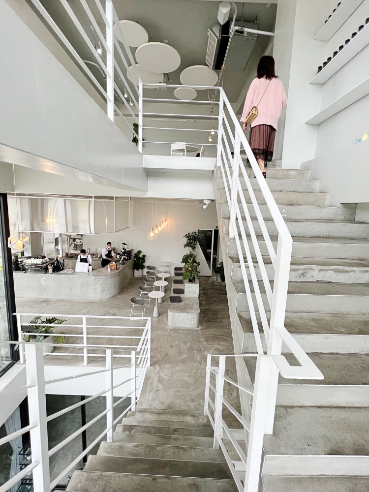 室內以白色系貫穿,階梯設計更是讓整體視覺大加分,白色欄杆、水泥階梯,沒有過多裝飾,更顯得純粹美麗。