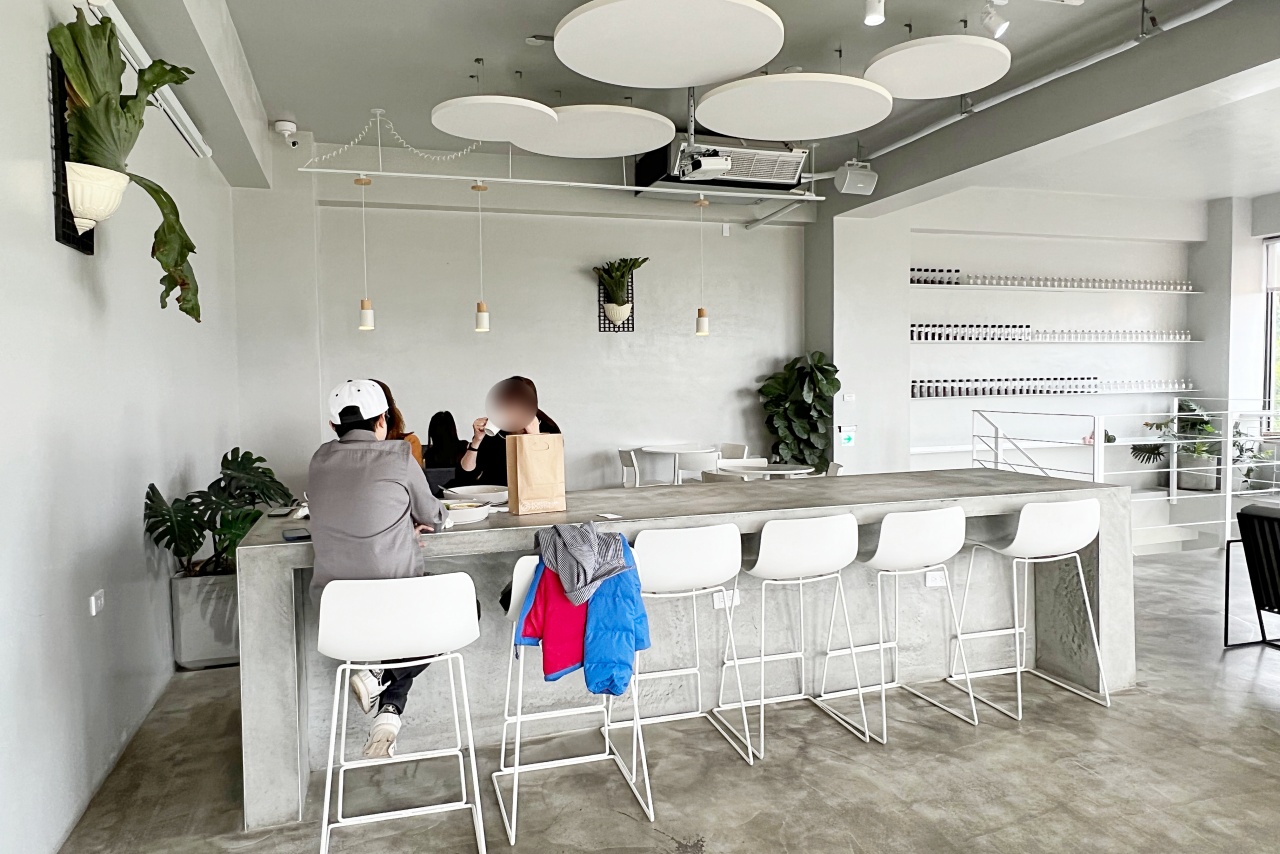 二樓空間比一樓來的寬敞舒適,我們就決定在二樓用餐了挑選喜歡的座位入座。有2-3人小圓桌、4人方桌、12人大長桌、落地窗高腳椅區,沒有過於壅擠的擺設,穿透又充滿質感,把舒適感留給了空間。