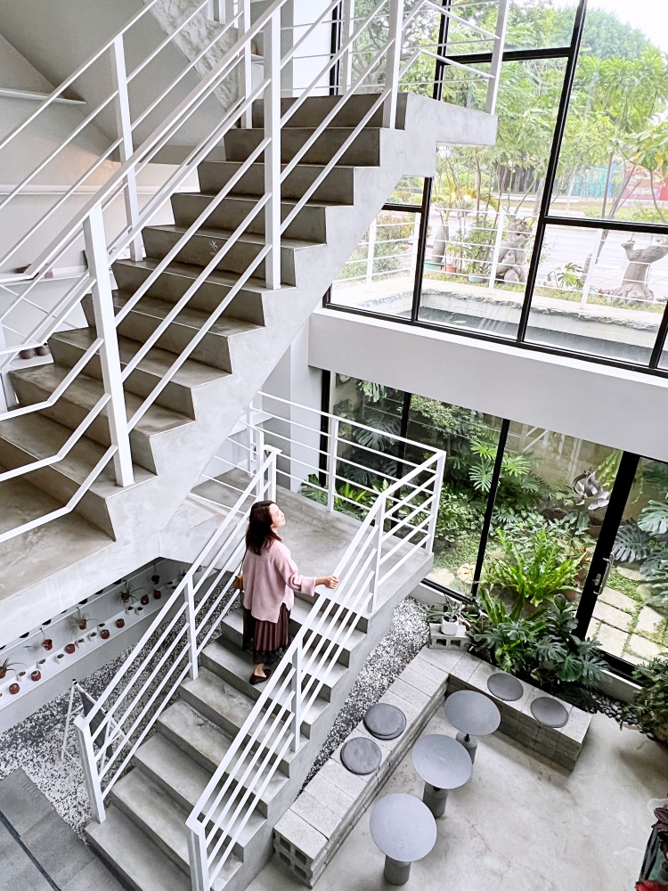階梯也成為拍照景點之一,樓層間挑高的空間,穿透明亮的採光,讓窗外的陽光灑入,這是一棟會呼吸的建築物啊,每個角落都透著清新的舒適感。
