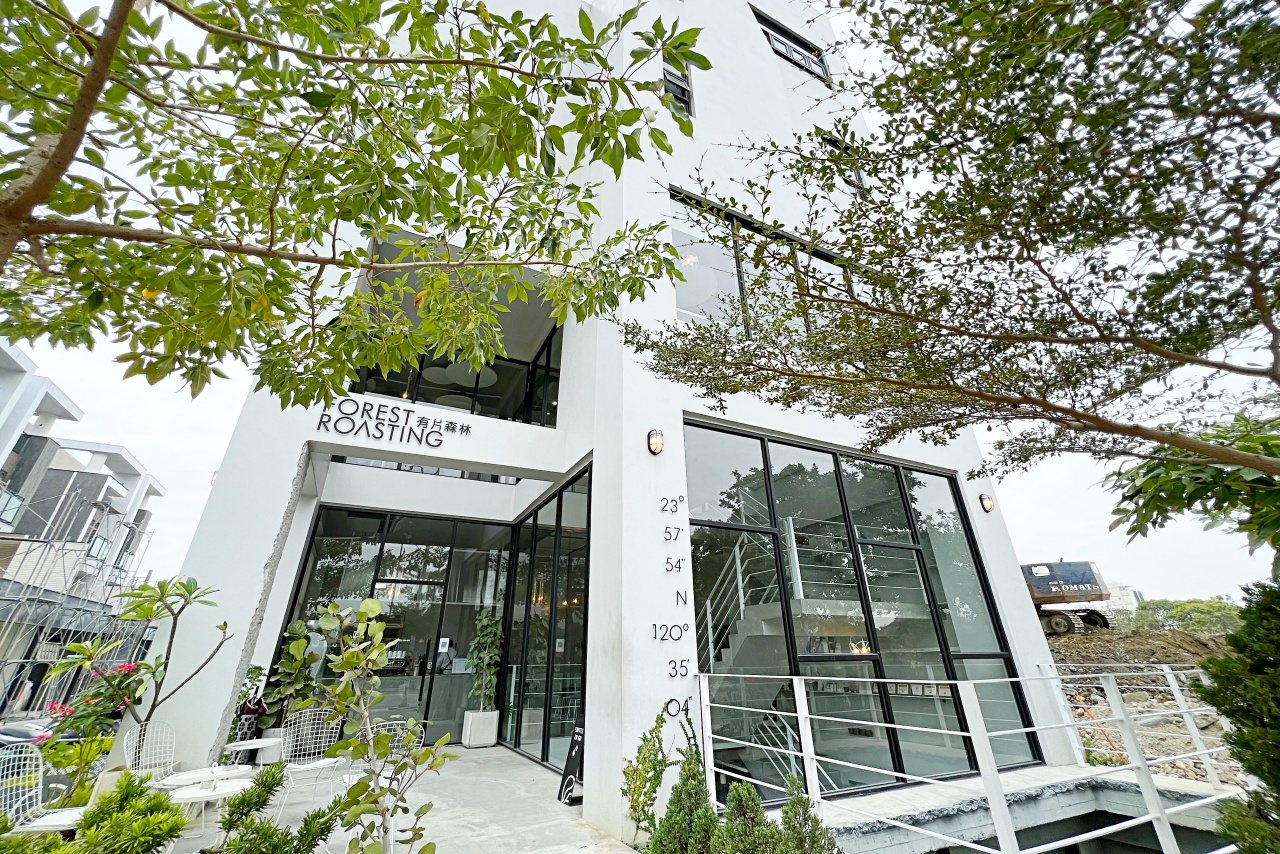 【有片森林】位在彰化縣員林鎮員林大道三段,是三層樓純白建築物與落地玻璃窗搭,獨特美感的設計,成為假日一位難求的熱門網紅店,不提供訂位,只能現場等候。從外觀可以看見大門口前方特意打造鏤空的B1小花園,在藍天白雲的映襯下更顯得生機盎然,讓原本冰冷的建築物因為這些可愛綠植栽,像是一座會呼吸的玻璃屋。