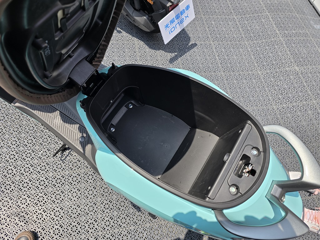 另外一個好處就,車廂因為不用放電池,所以完全解放空間,車廂空間變得更大,也可以更容易放入安全帽與其他雜物。
