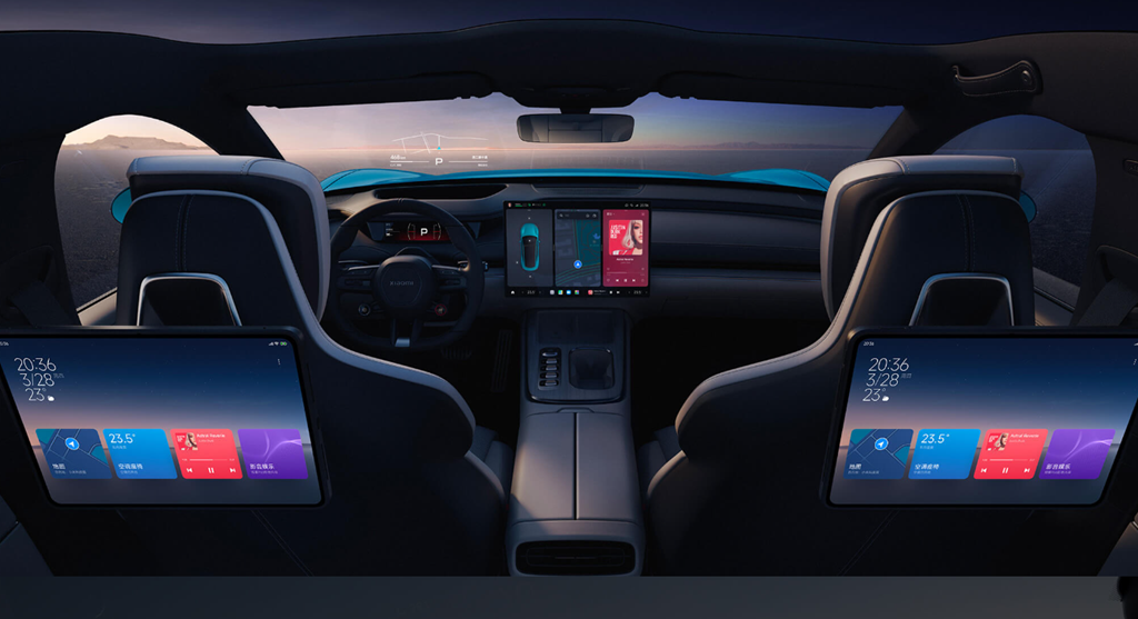身為小米首款電動車,當然也把自家產品生態系全數都搬到車上,包括採用高通 Snapdragon 8295 智慧座艙晶片、Xiaomi HyperOS 系統,並配有 16.1 吋 3K 中控多功能顯示螢幕、7.1 吋翻轉式數位儀表,加上後座乘客還能利用前排椅背的擴充接口,接上小米平板或 iPad,可以讓後座乘客享受與前座相同的影音娛樂效果,當然除了 Android Auto 外,也支援 CarPlay。