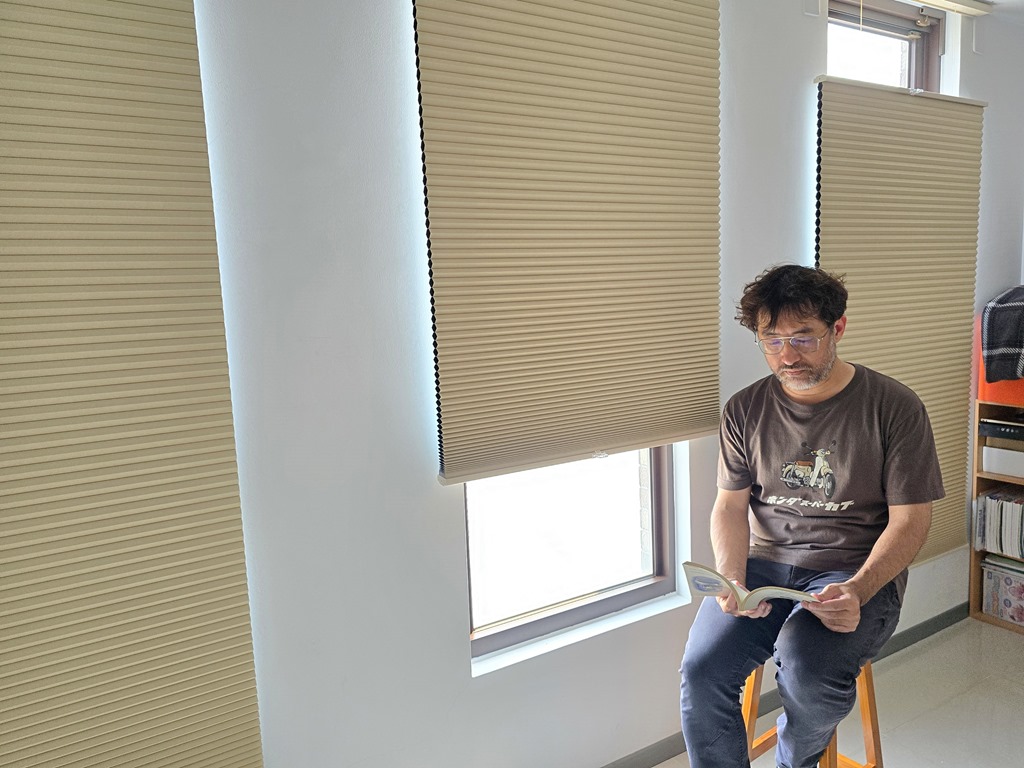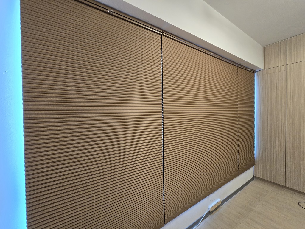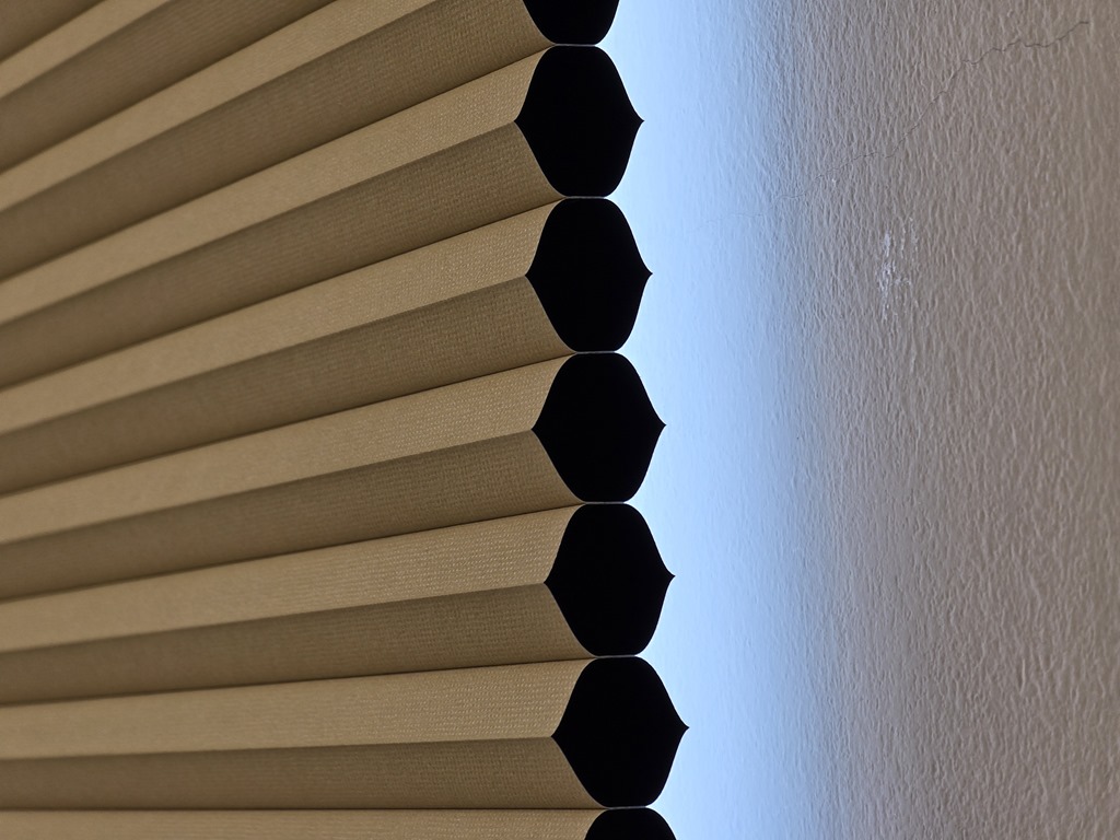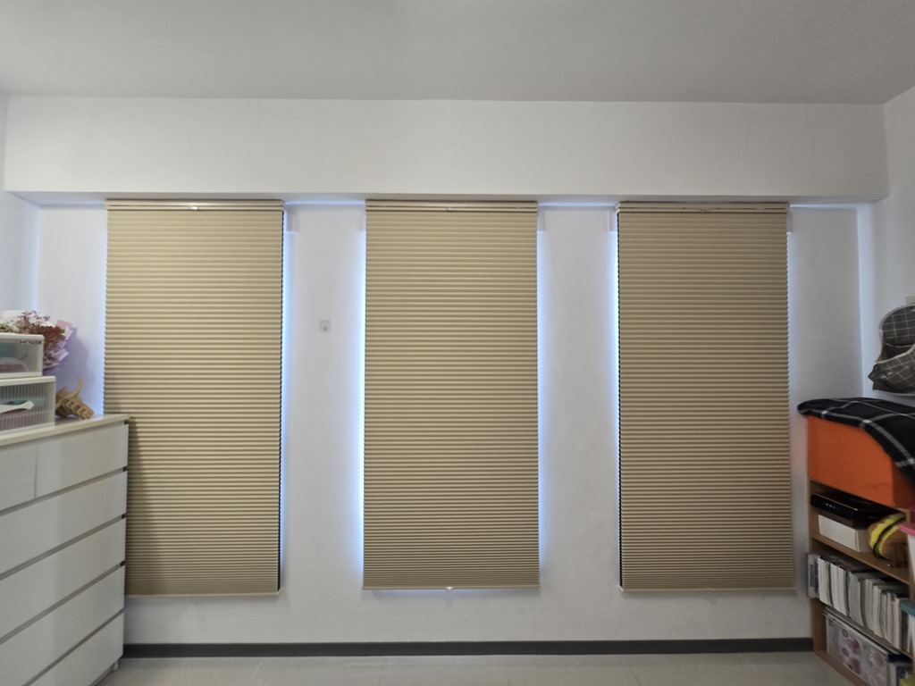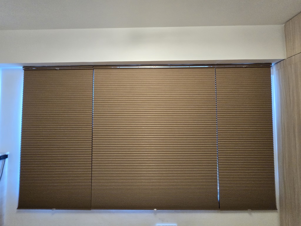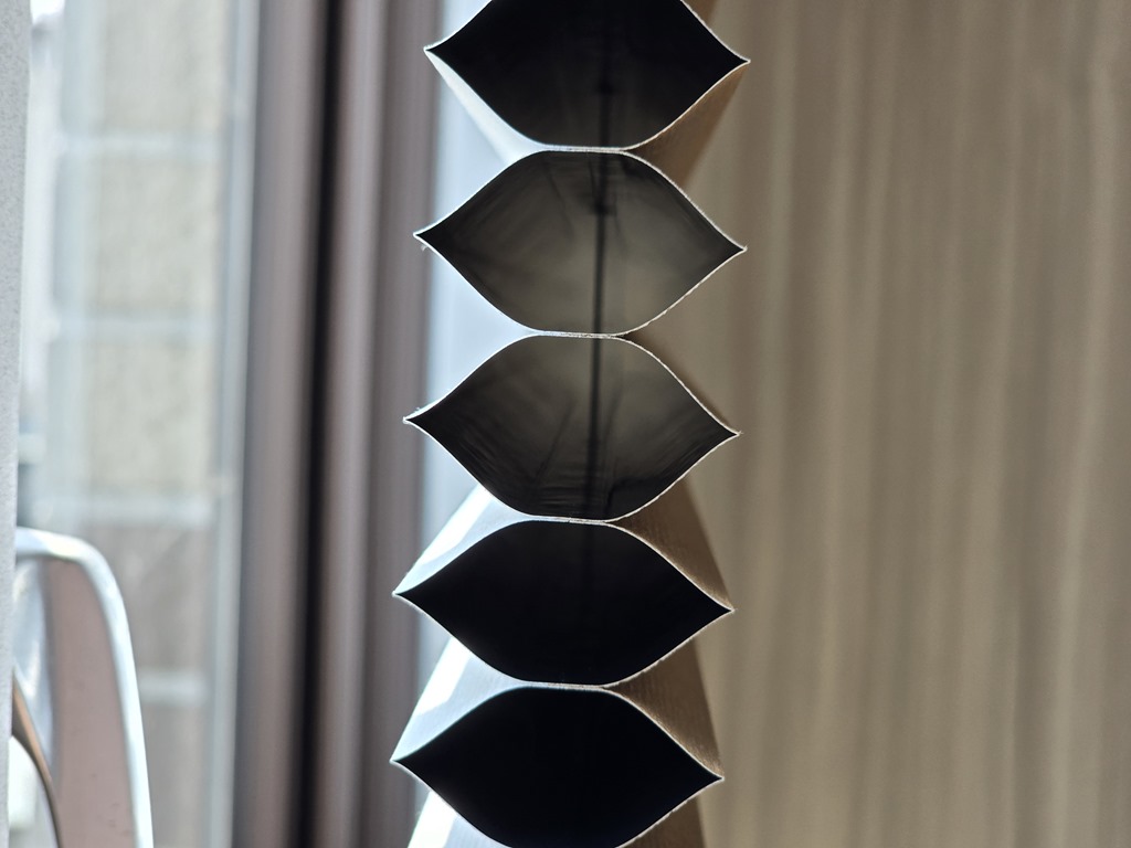 其實在選購蜂巢簾時,這次就有做一些功課了,以我的需求來說,最重要就是隔熱,蜂巢簾是以立體六角形的方式構成,也就是中間會有氣室。就像保溫杯或是雙層中空玻璃一樣,只要中間有氣室,就可以達到隔絕室內室外溫度的效果,所以無論外面是冷是熱,都可以保持室內有更合適的溫度,空調也更不受外在溫度影響,進而更省電。